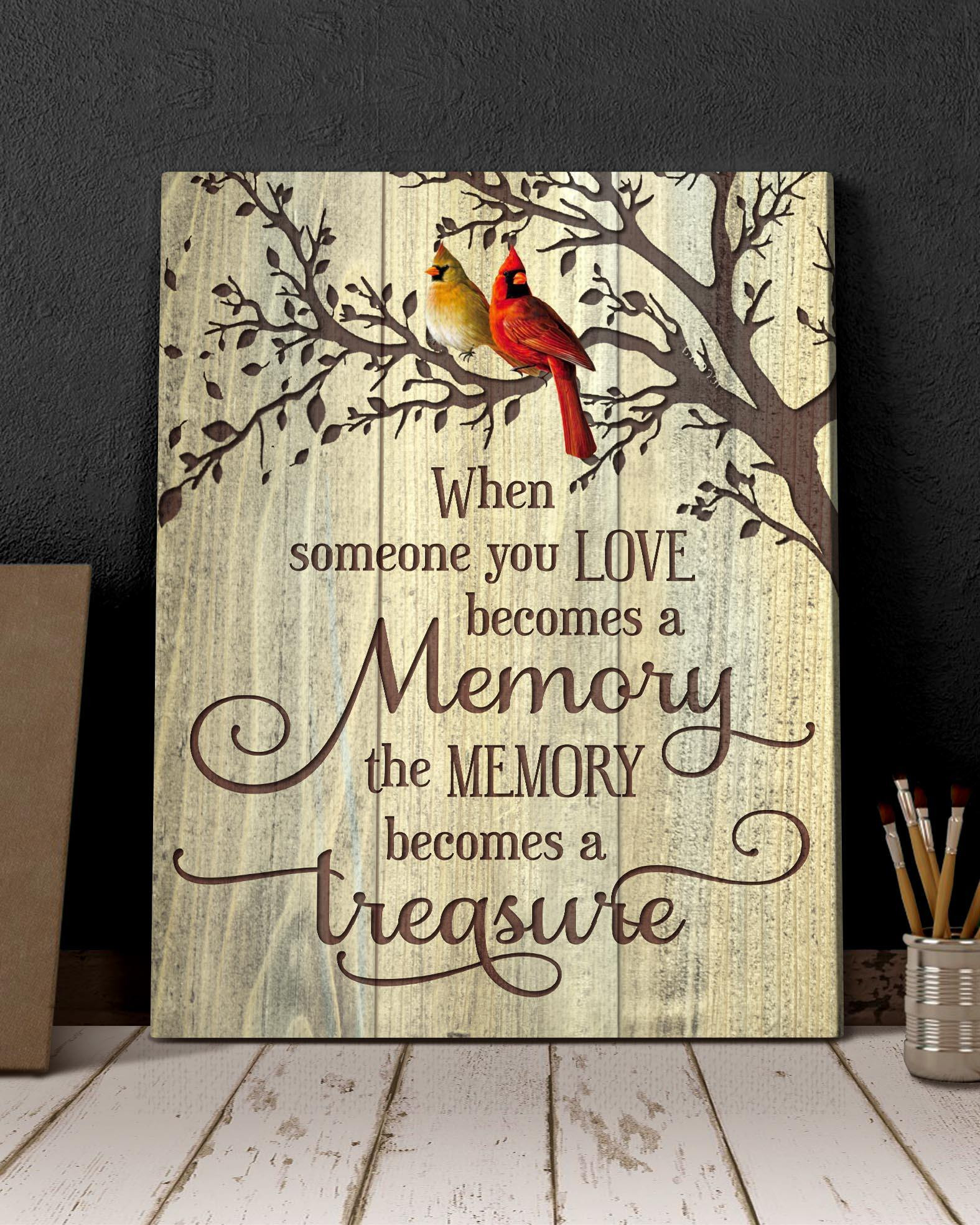 Cardinal Pussy Pillow Memorial Wall Art Canvas, When Someone We Love In Heaven