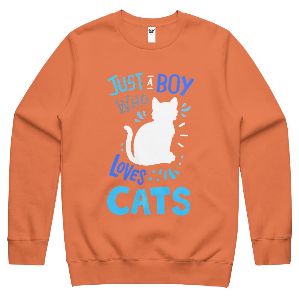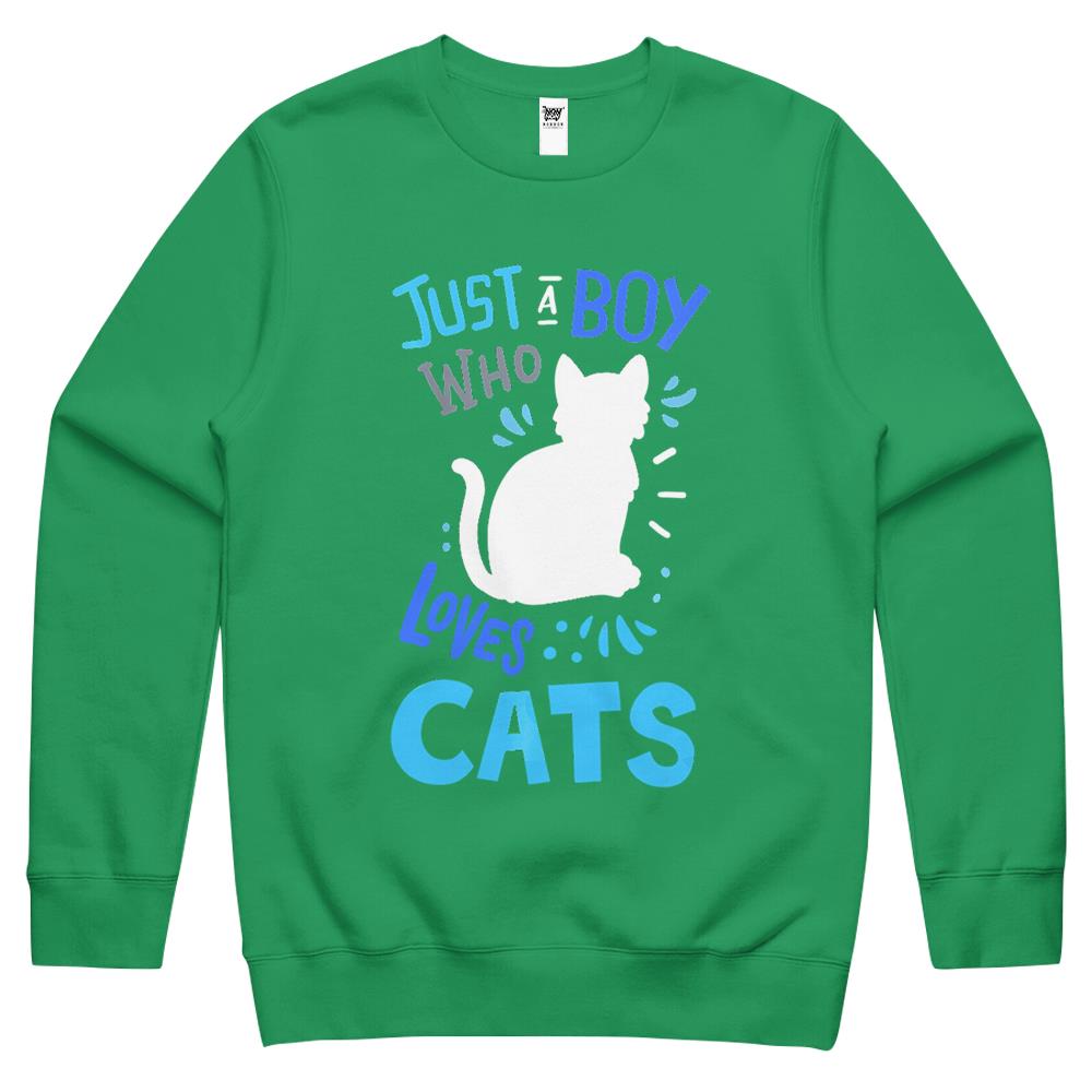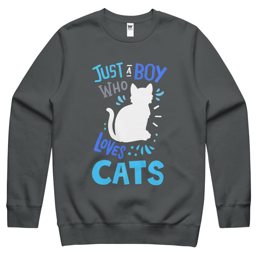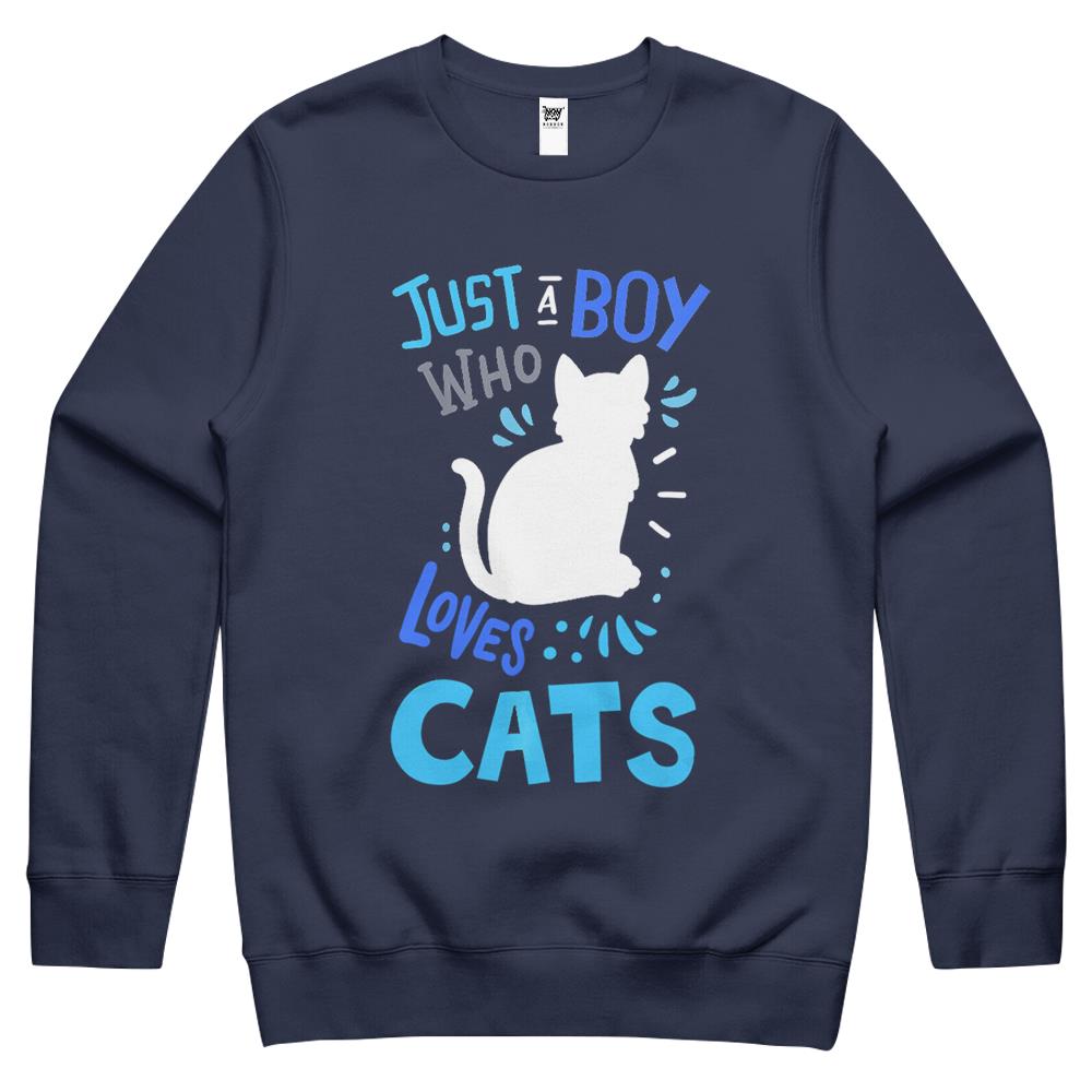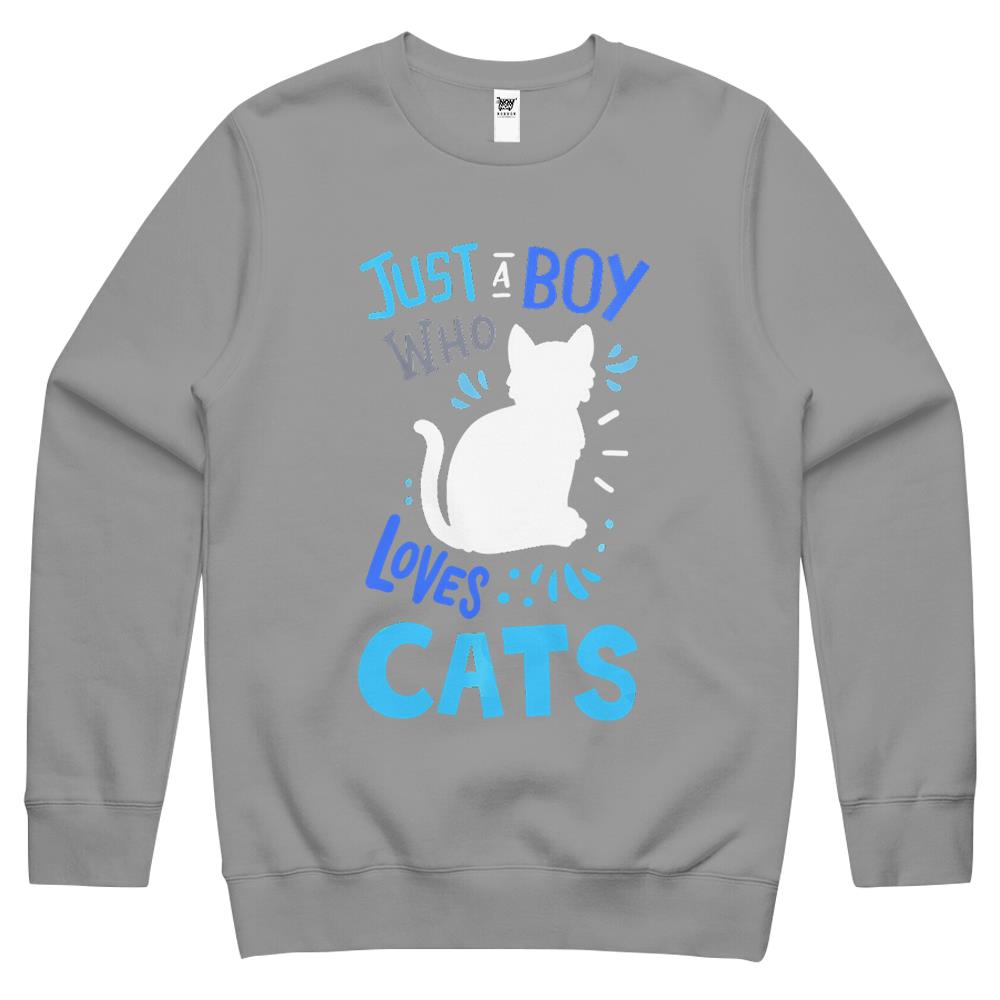 Cat Just A Boy Who Loves Cats Gift For Cat Lovers Crewneck Sweatshirt