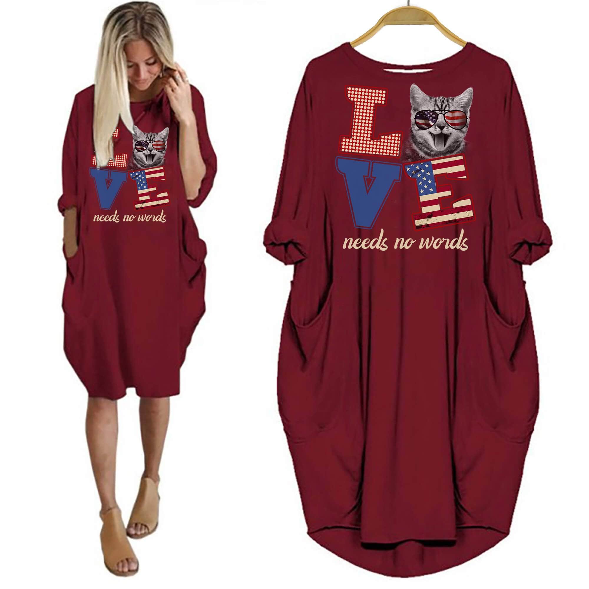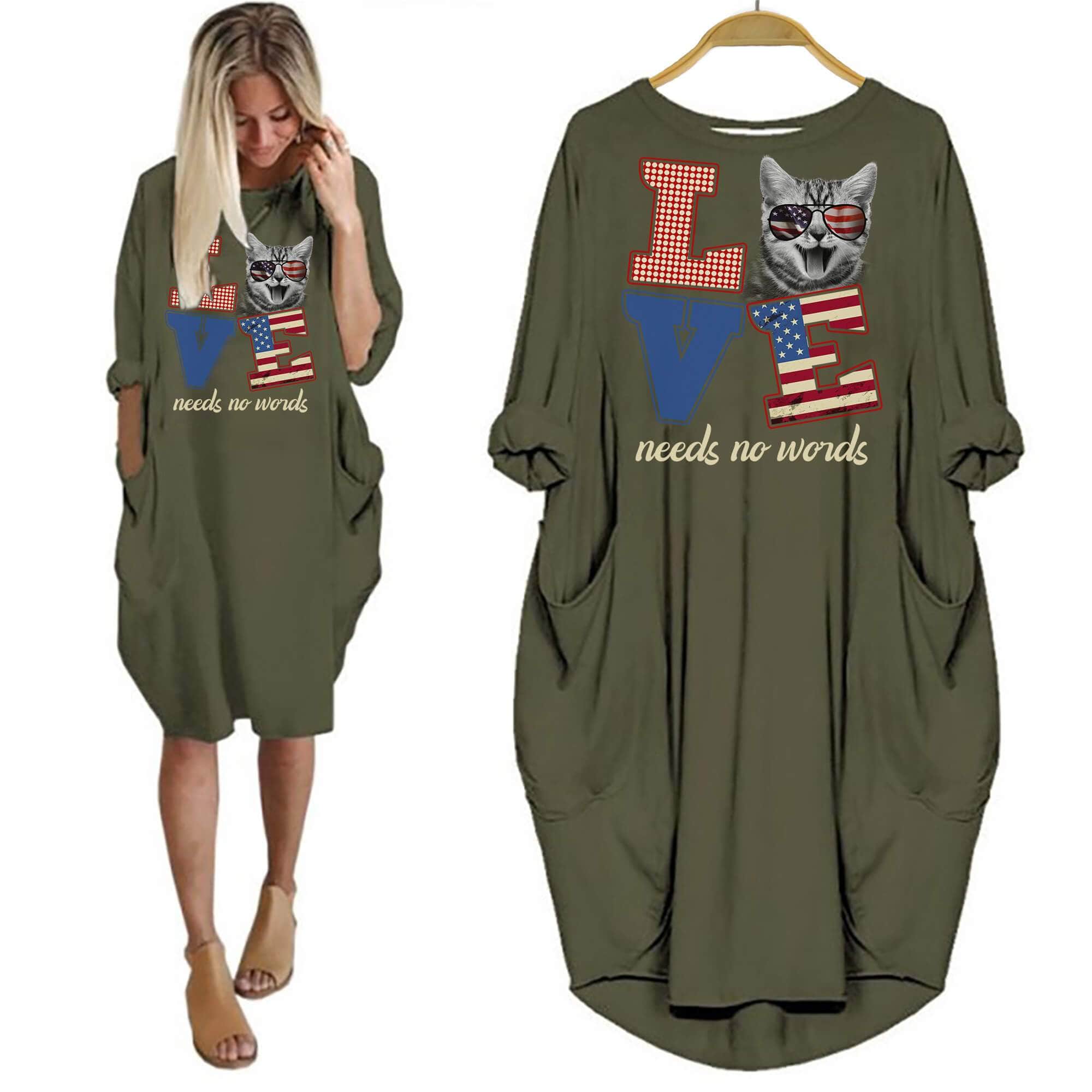 So whether you're looking to show off your own name or create a personalized gift for someone special, LateAndLow Store has got you covered. Start designing your own custom Cat Shirt Love Needs No Words Women Dress For Her print-on-demand product today, and let us bring your vision to life!