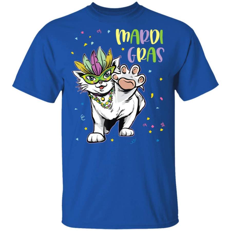 Cat With Mardi Gras Mask Costume Dancing Happy Mardi Gras T Shirt Costume Mask T-Shirt Fat Tuesday Tshirt Carnival Festival Tee Friends Shirts