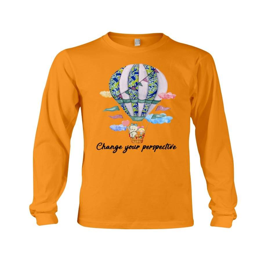 So whether you're looking to show off your own name or create a personalized gift for someone special, LateAndLow Store has got you covered. Start designing your own custom Change Your Perspective Down Lovely Balloon Unisex Long Sleeve print-on-demand product today, and let us bring your vision to life!
