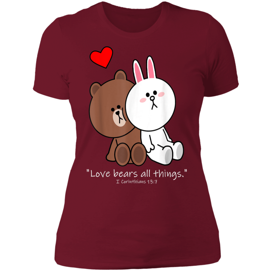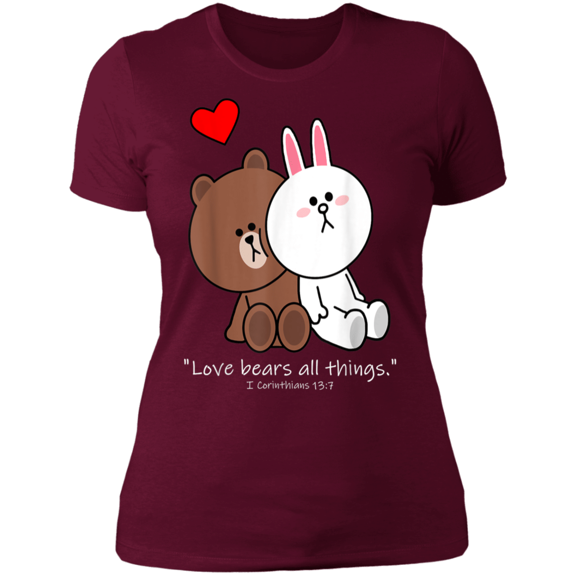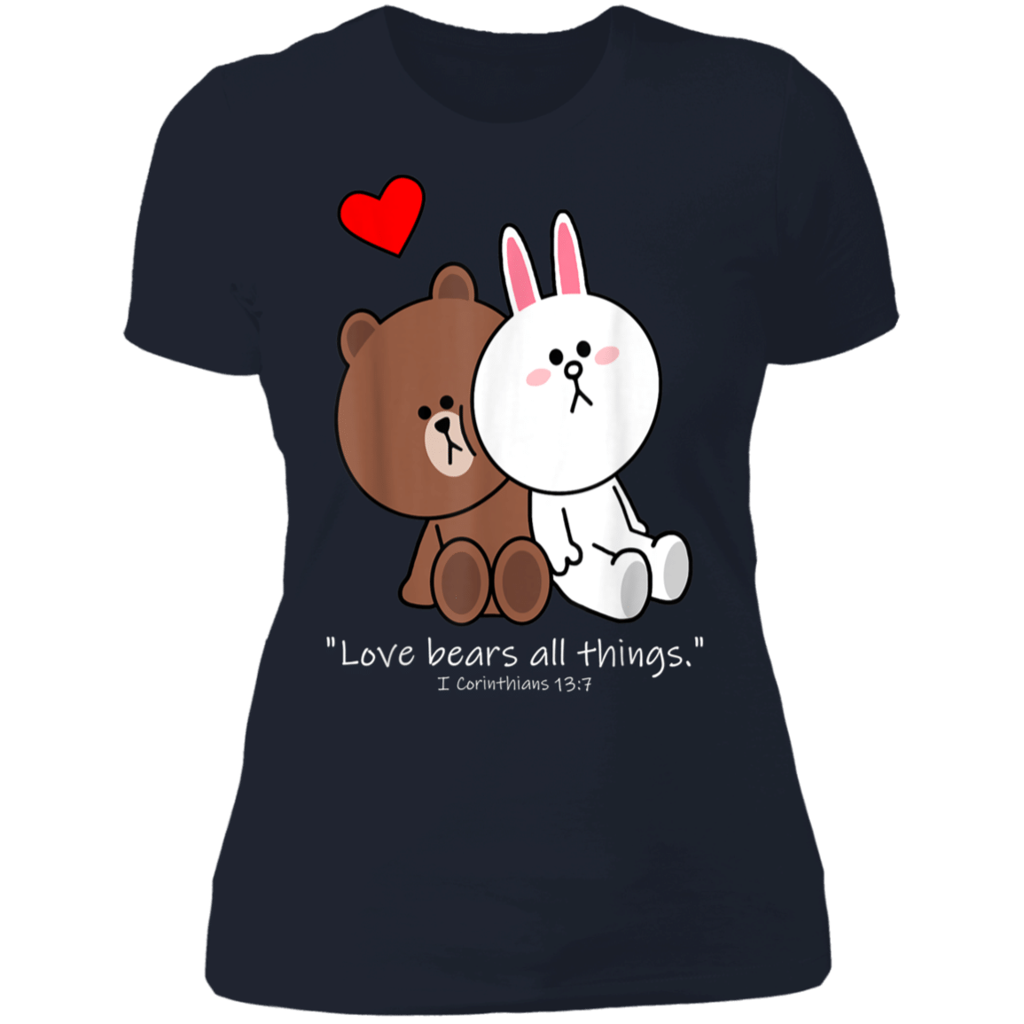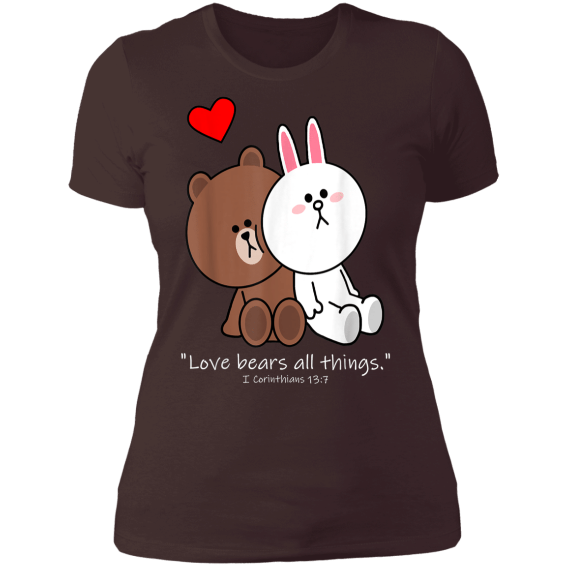 So whether you're looking to show off your own name or create a personalized gift for someone special, LateAndLow Store has got you covered. Start designing your own custom Christian Brown Bear Cony Bunny Rabbit Love Bears All Things Ladies’ T-Shirt print-on-demand product today, and let us bring your vision to life!