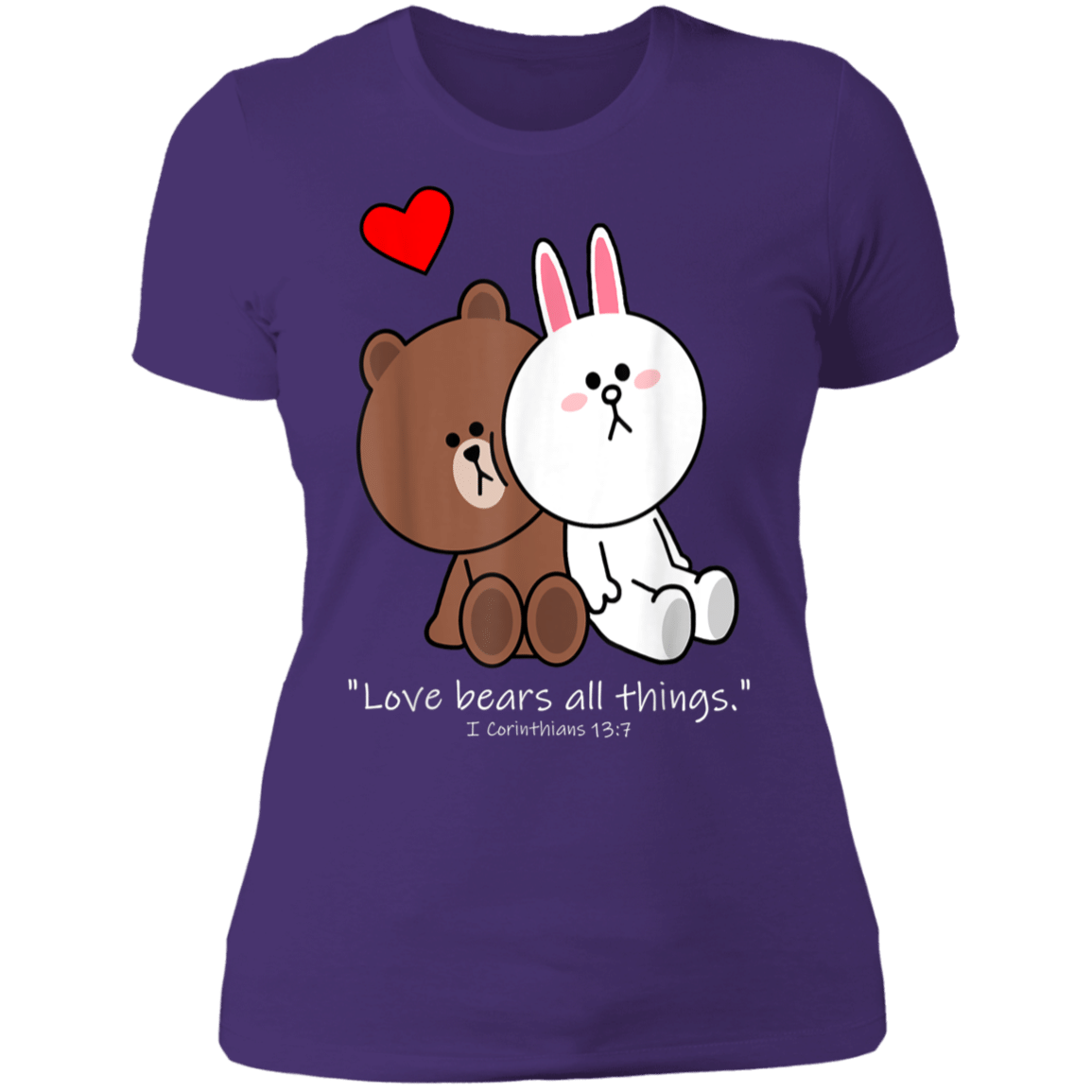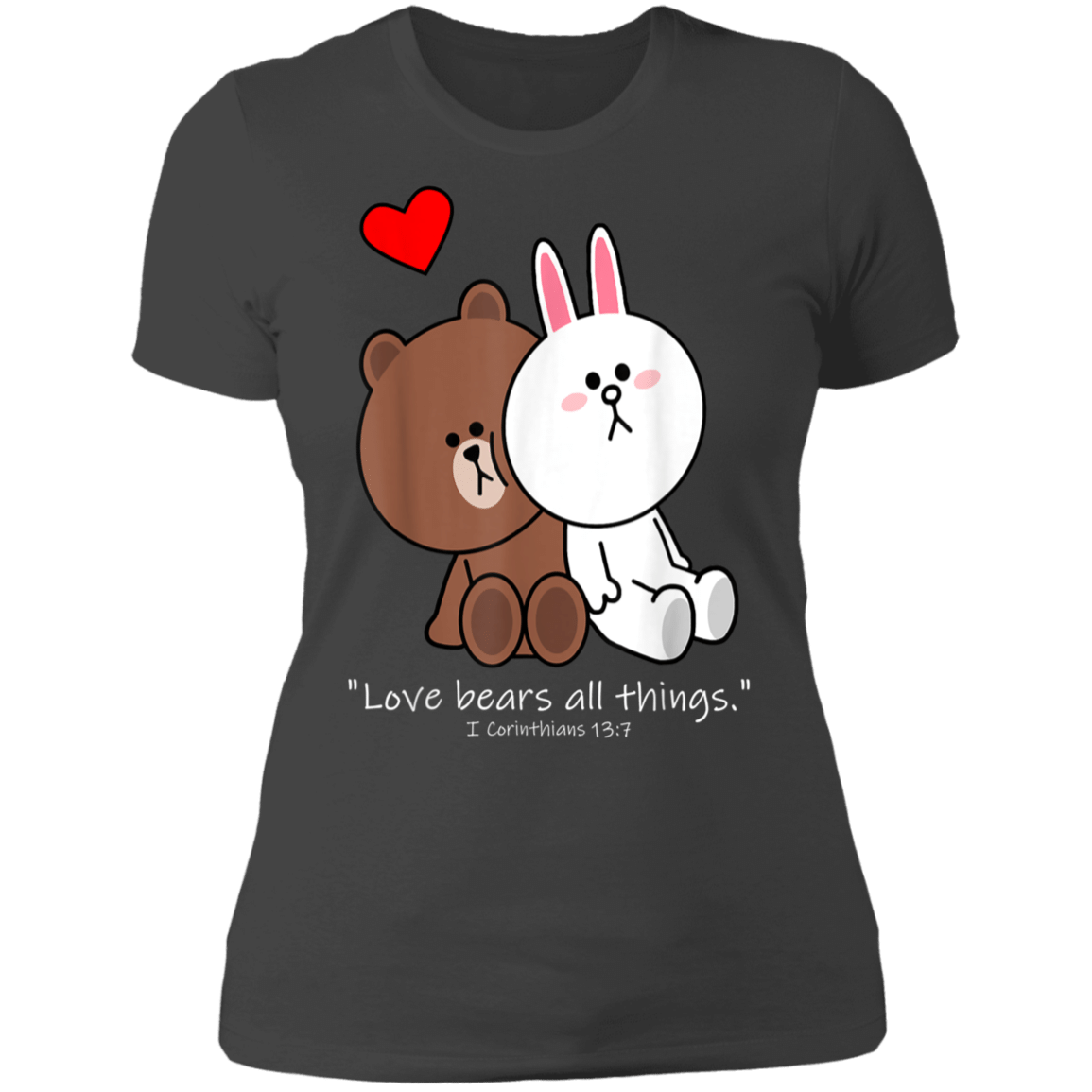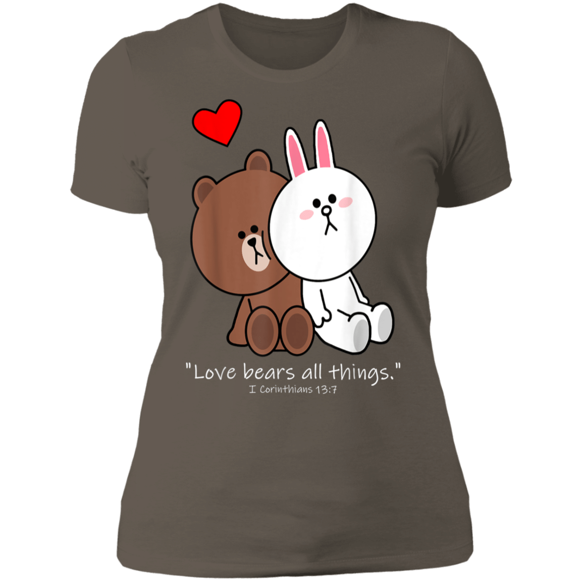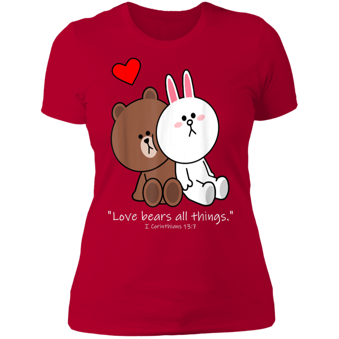 So whether you're looking to show off your own name or create a personalized gift for someone special, LateAndLow Store has got you covered. Start designing your own custom Christian Brown Bear Cony Bunny Rabbit Love Bears All Things Ladies’ T-Shirt print-on-demand product today, and let us bring your vision to life!