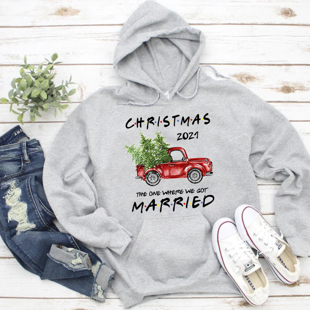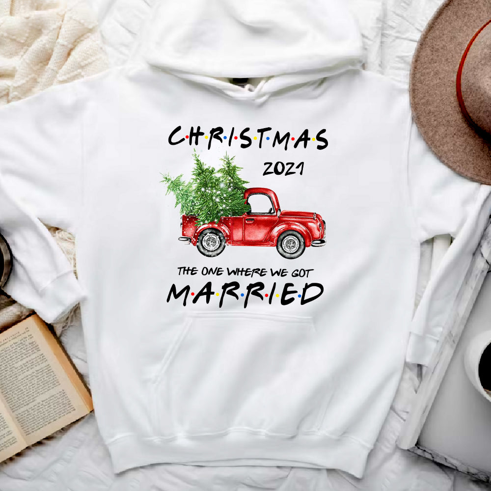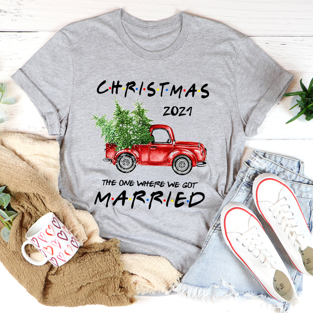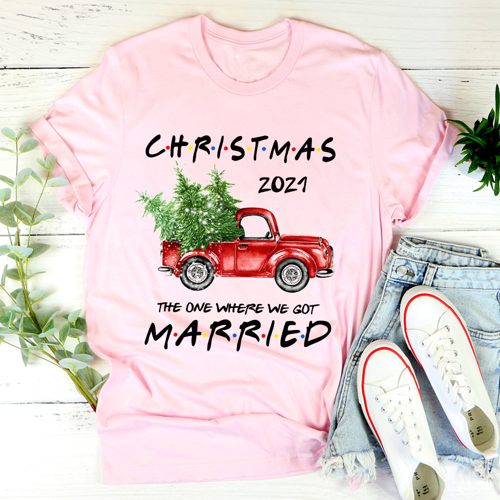 Christmas 2021 The One Where We Got Married Newly Wed Couple Red Truck T Shirt