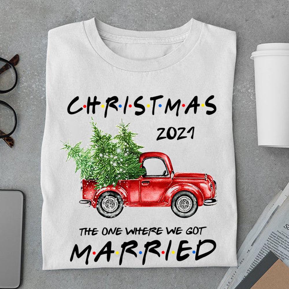 Christmas 2021 The One Where We Got Married Newlywed Couple Red Truck T Shirt