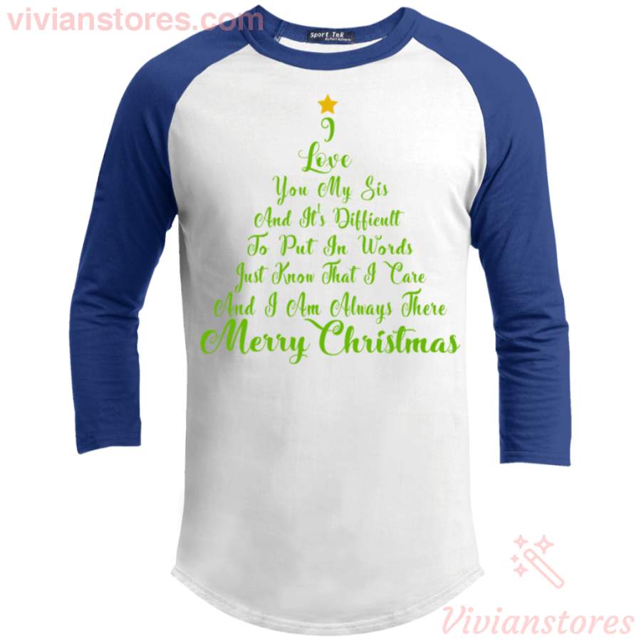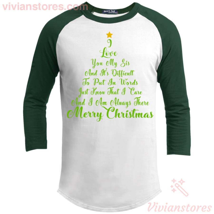 Christmas Tree Quotes Raglan Sleeve Shirt I Love You My Sis Merry Xmas