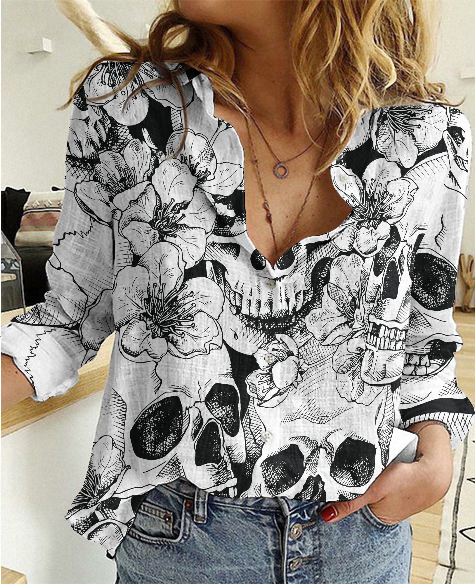 So whether you're looking to show off your own name or create a personalized gift for someone special, LateAndLow Store has got you covered. Start designing your own custom [CityBarks] [Linen Shirt] Love Skull -ZCL30 print-on-demand product today, and let us bring your vision to life!