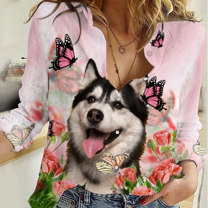 [CityBarks] [Linen Shirt] Lovely Siberian Husky-YCL689