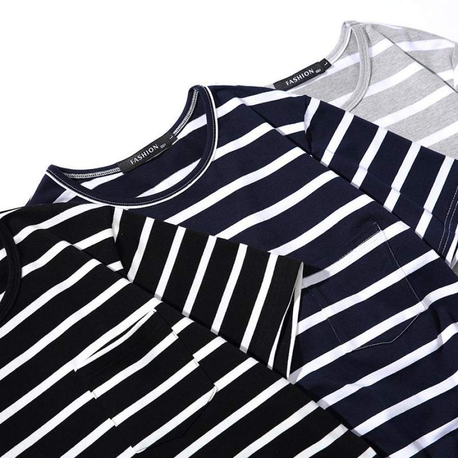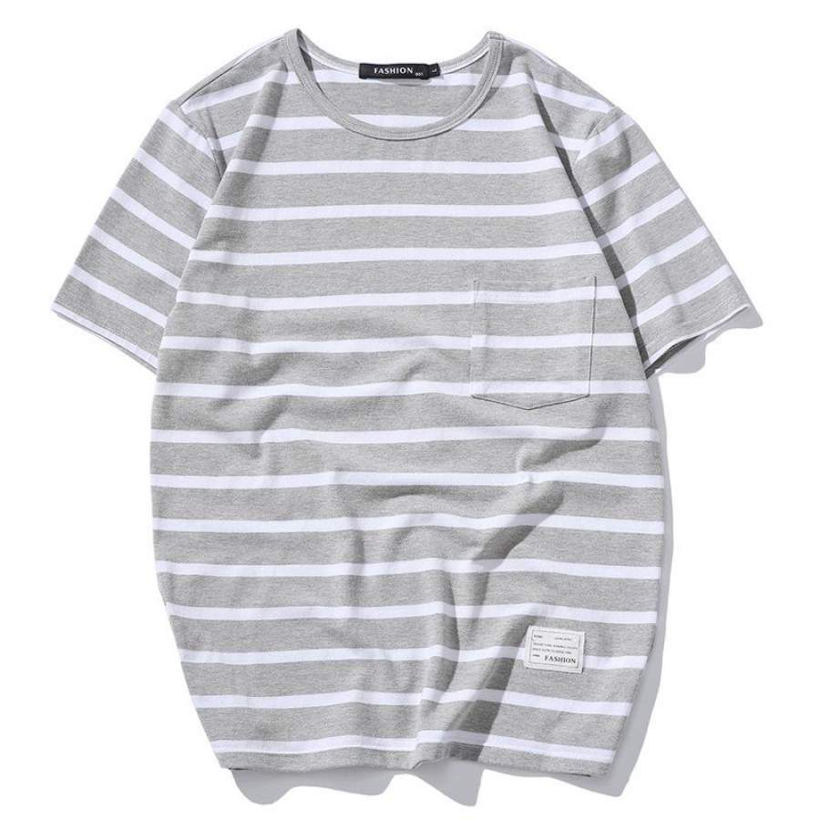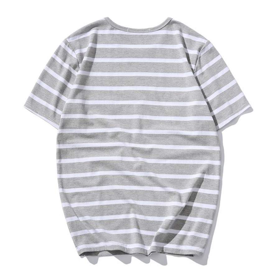 Classic Striped Men’s short Sleeve Black White grey Casual O-Neck T Shirt summer Men Cotton Clothing