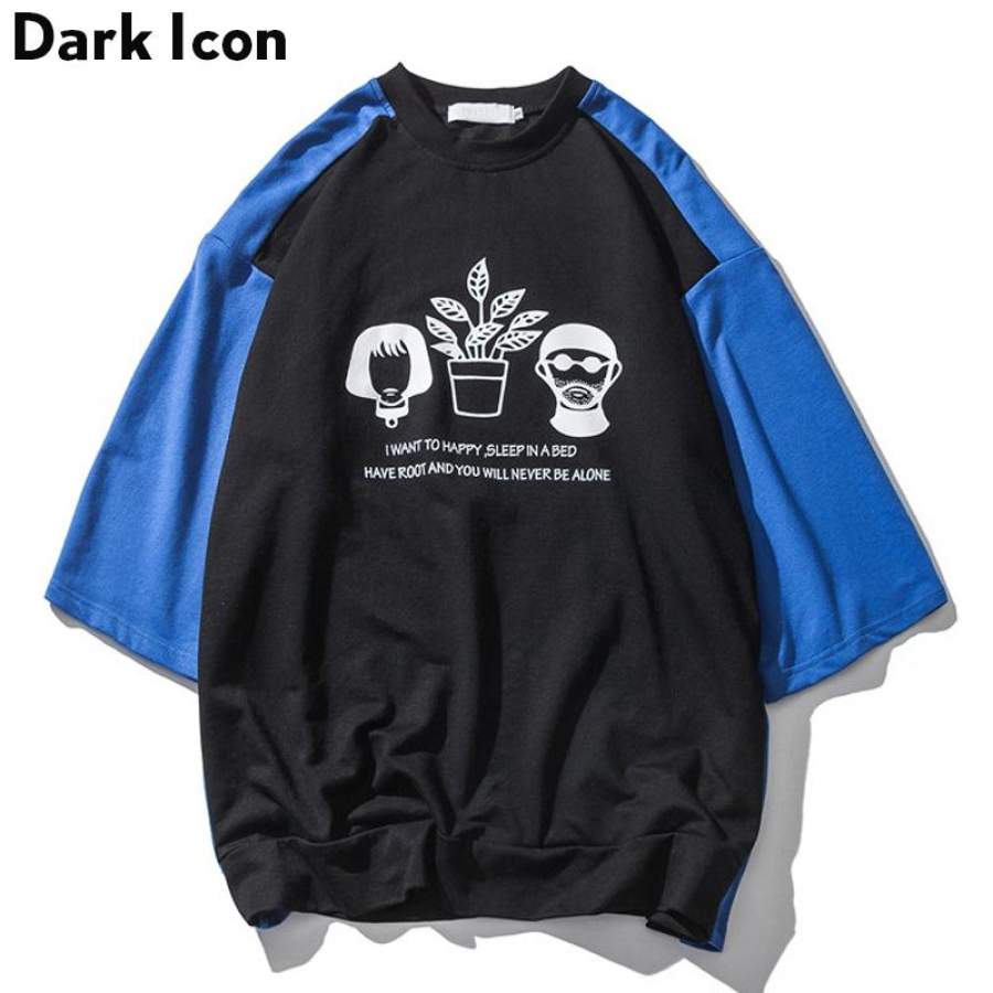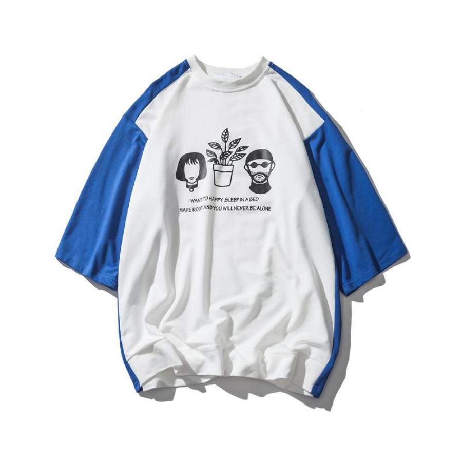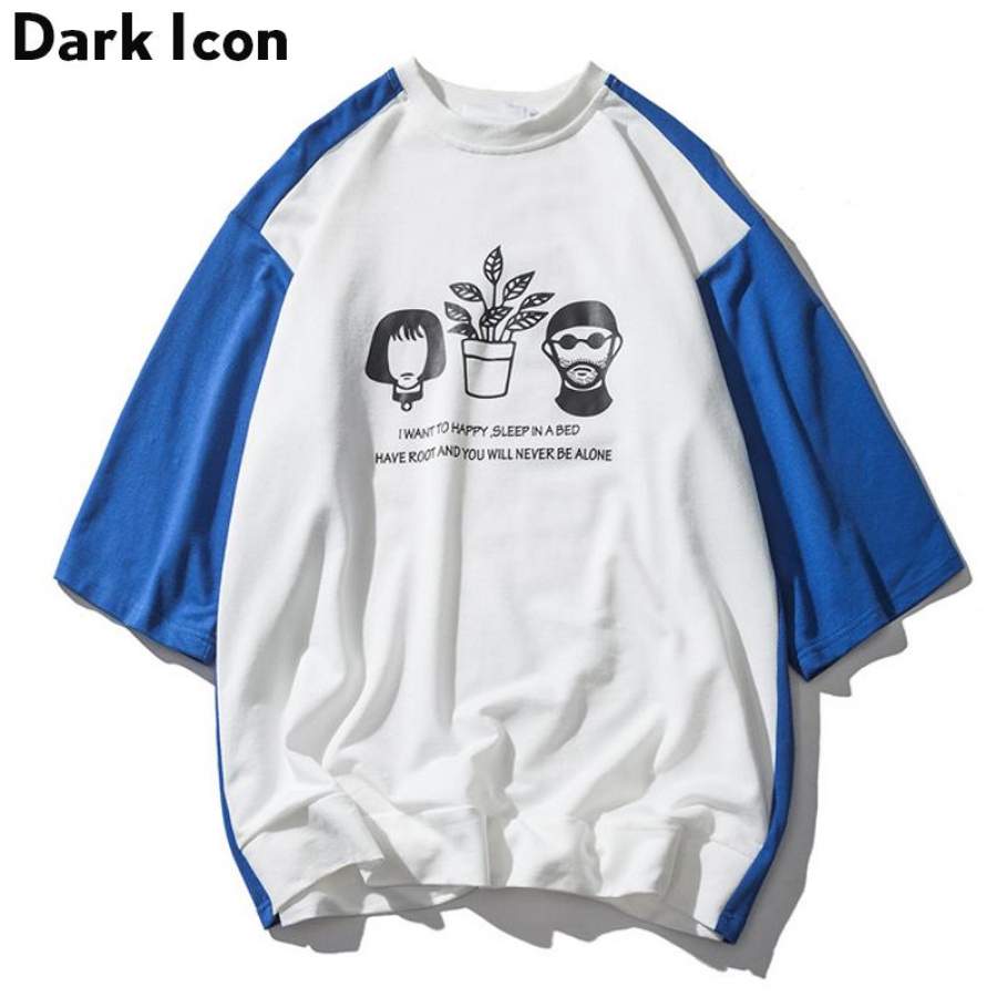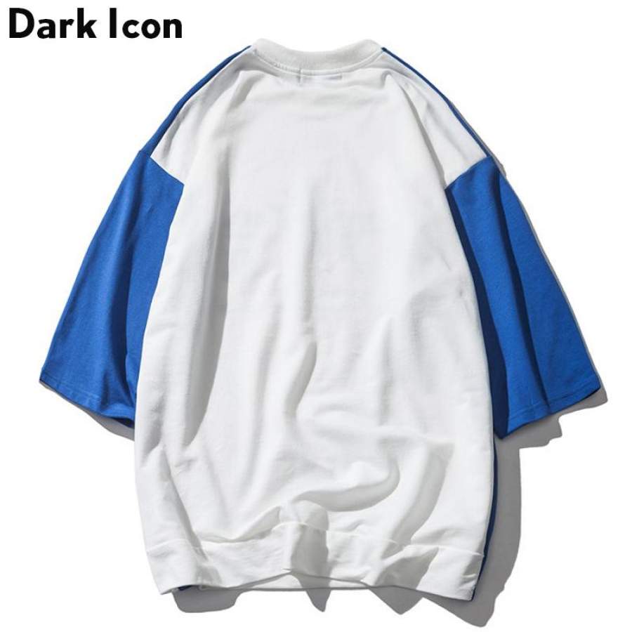 Color Block Printed Over sized T-shirt Men Summer Round Neck Men’s T shirts High Street Clothing 2 Colors