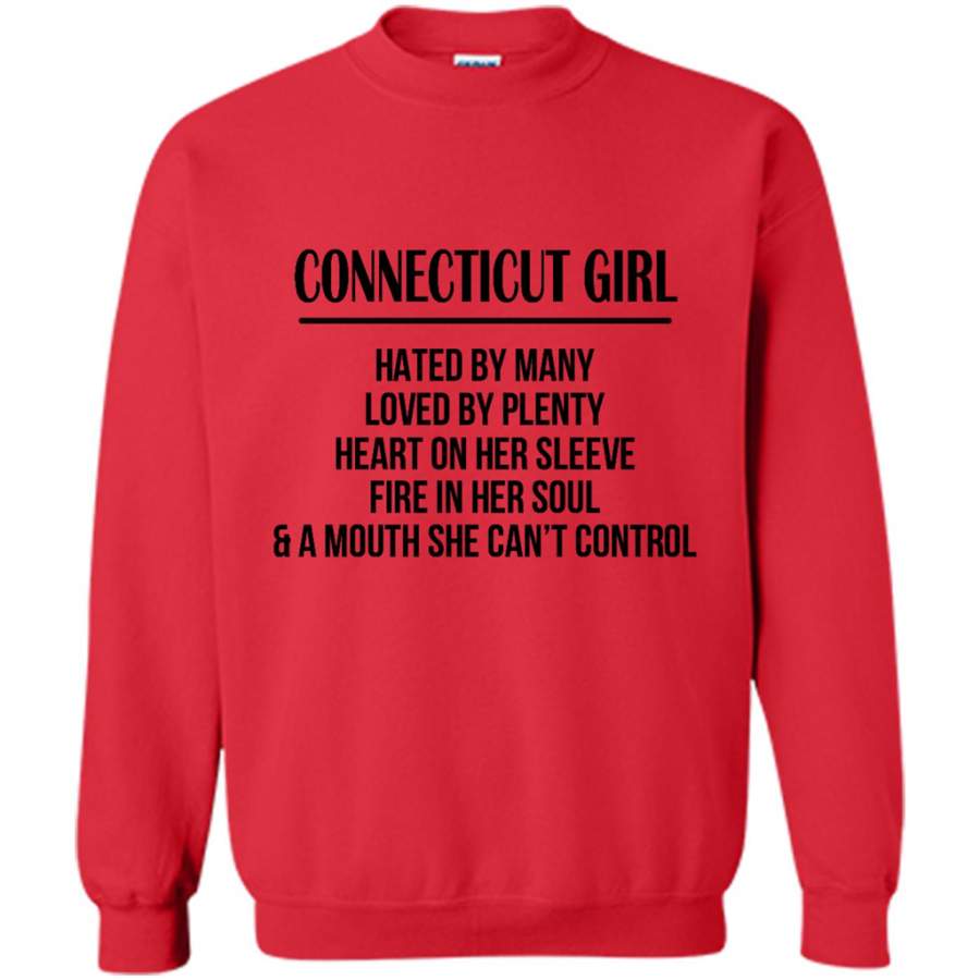 Connecticut Girl Hated By Many Loved By Plenty Heart On Her Sleeve Fire In Her Soul A Mouth She Can’t Control – Gildan Crewneck Sweatshirt
