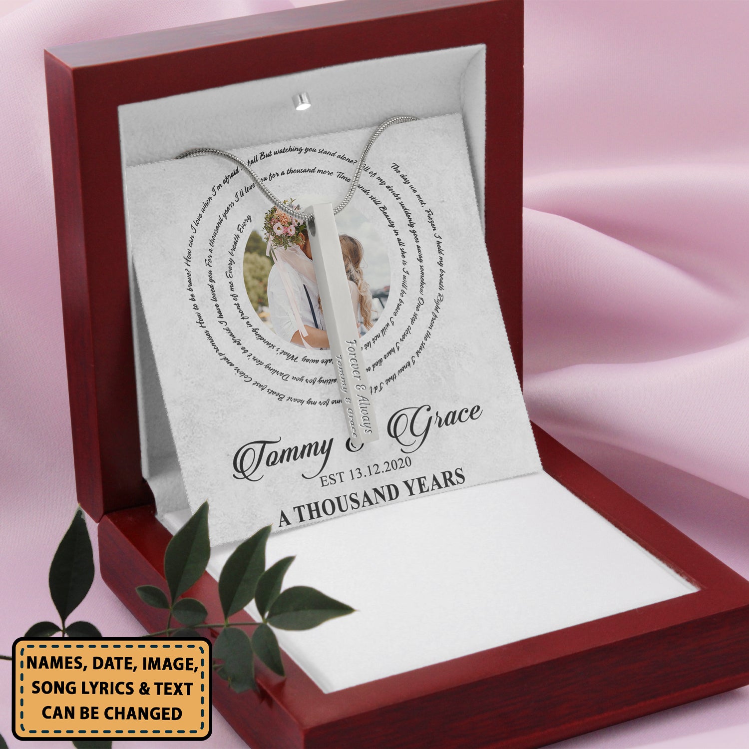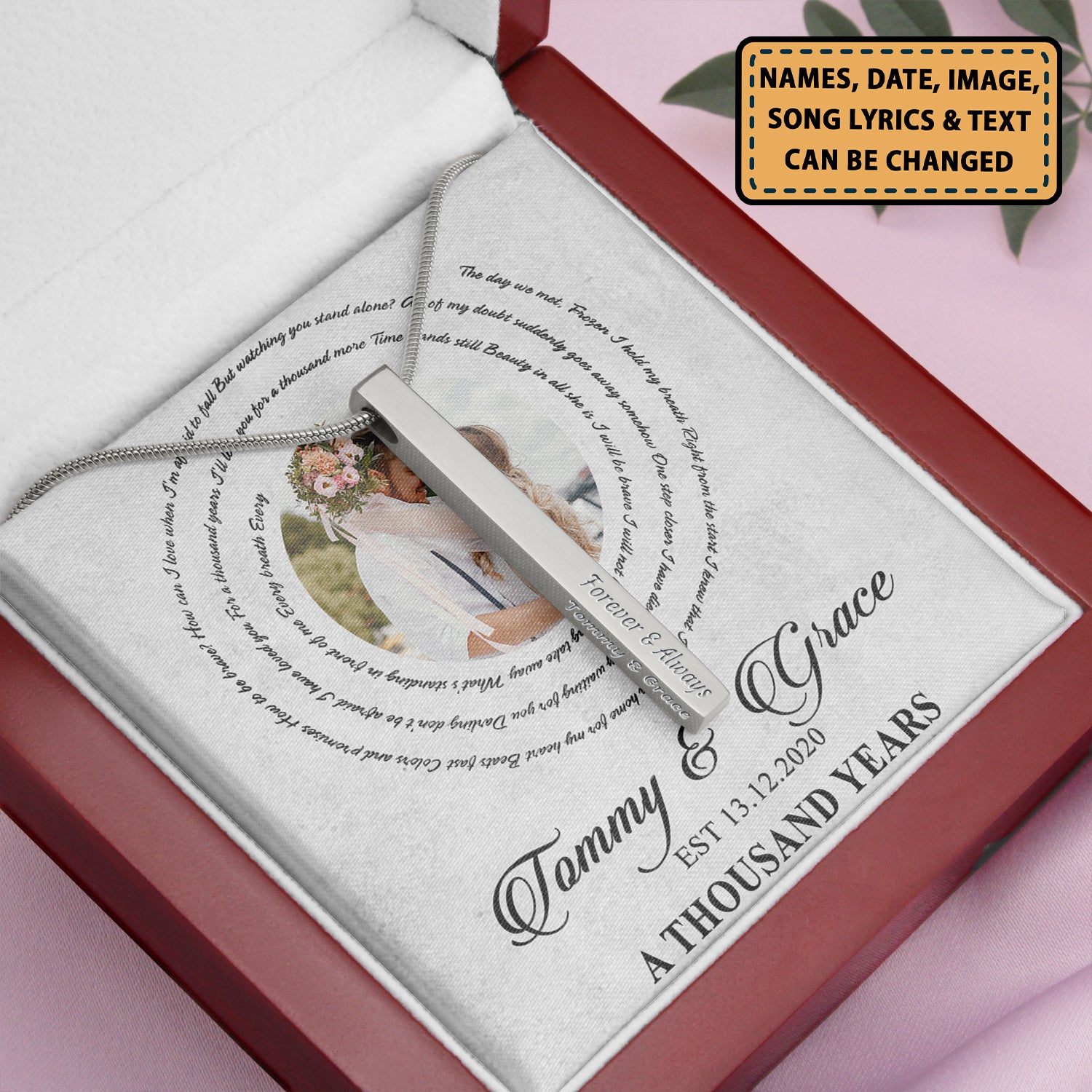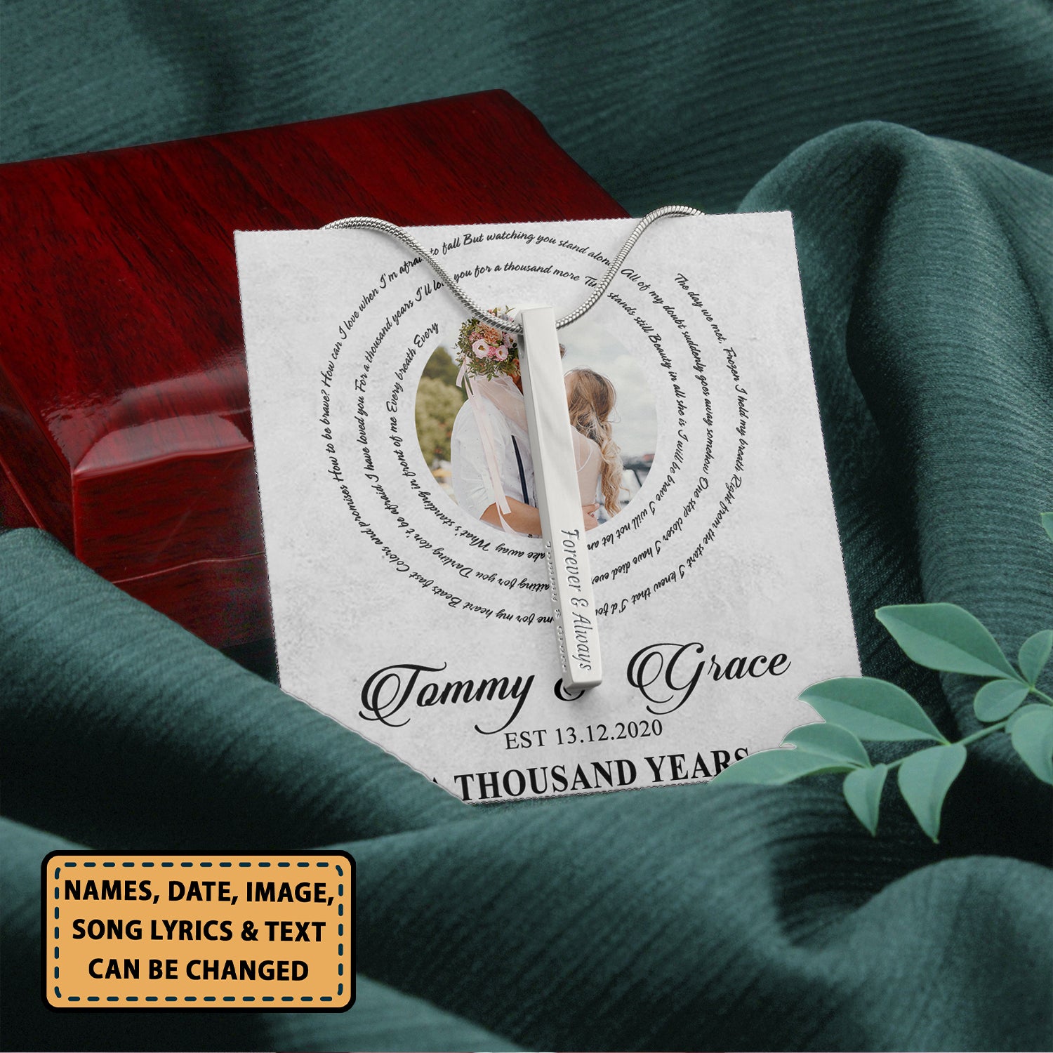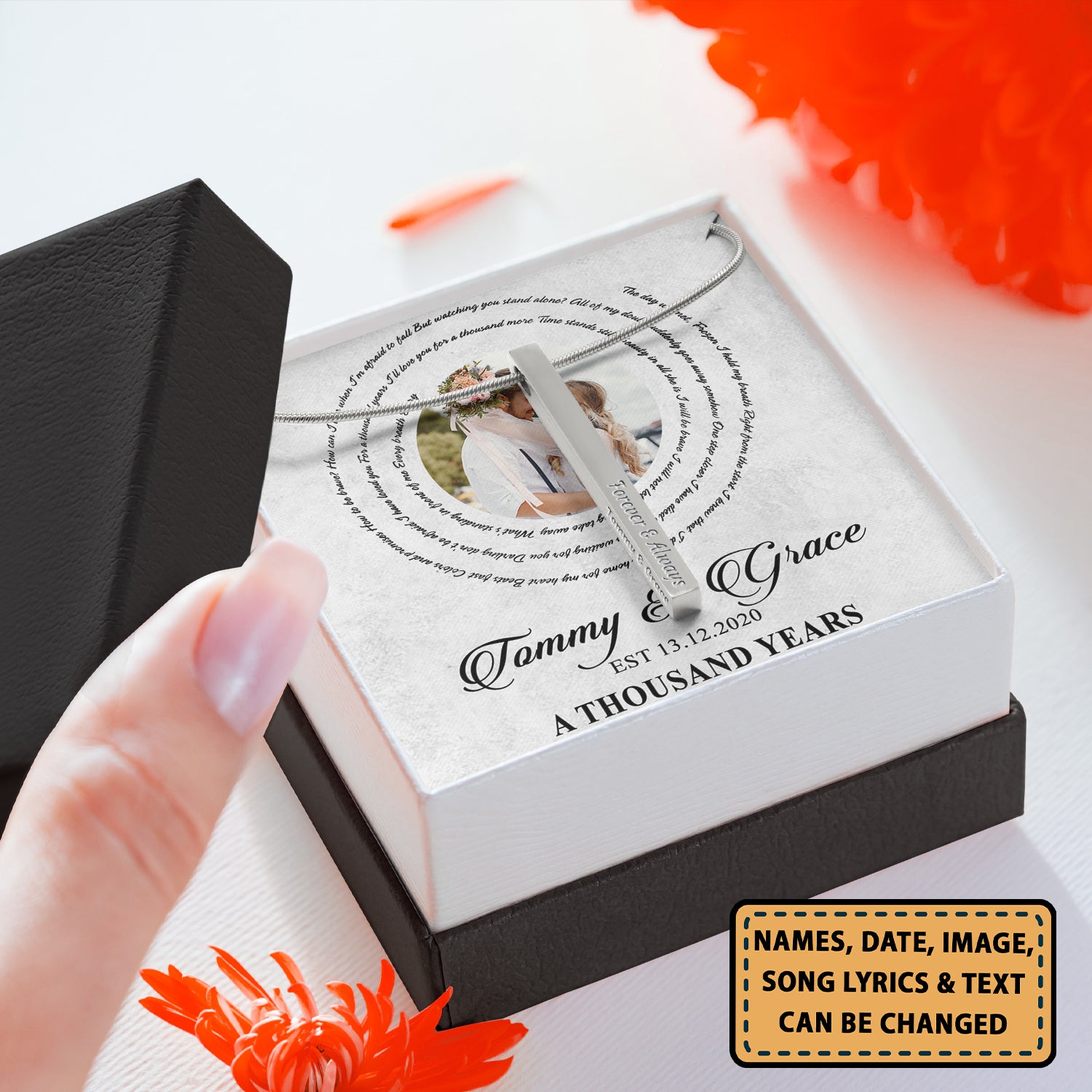 Couple A Thousand Years Custom Song Lyrics 5 – Stainless Steel Vertical Bar Necklace Personalizedwitch For Husband From Wife