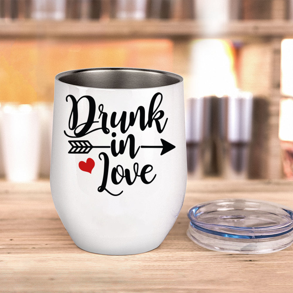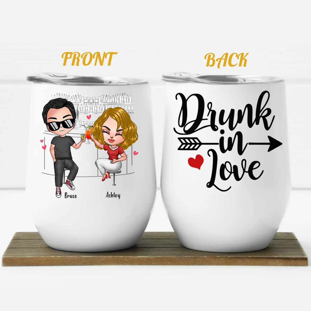 Couple Custom Wine Tumbler Drunk In Love Personalized Gift For Him Her