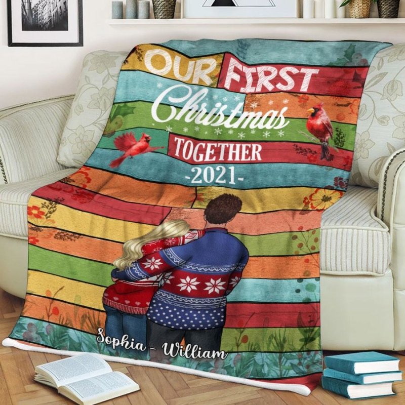 Couple First Christmas Color Wood Personalized Christmas Fleece Blanket For Couple