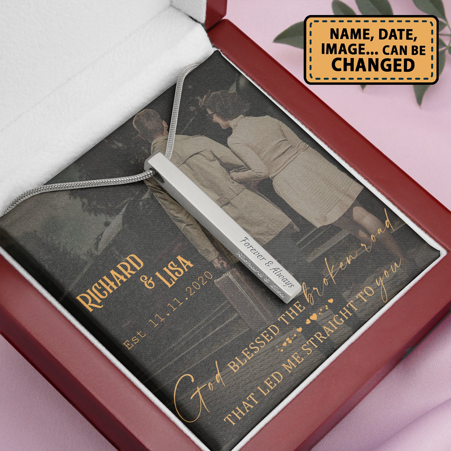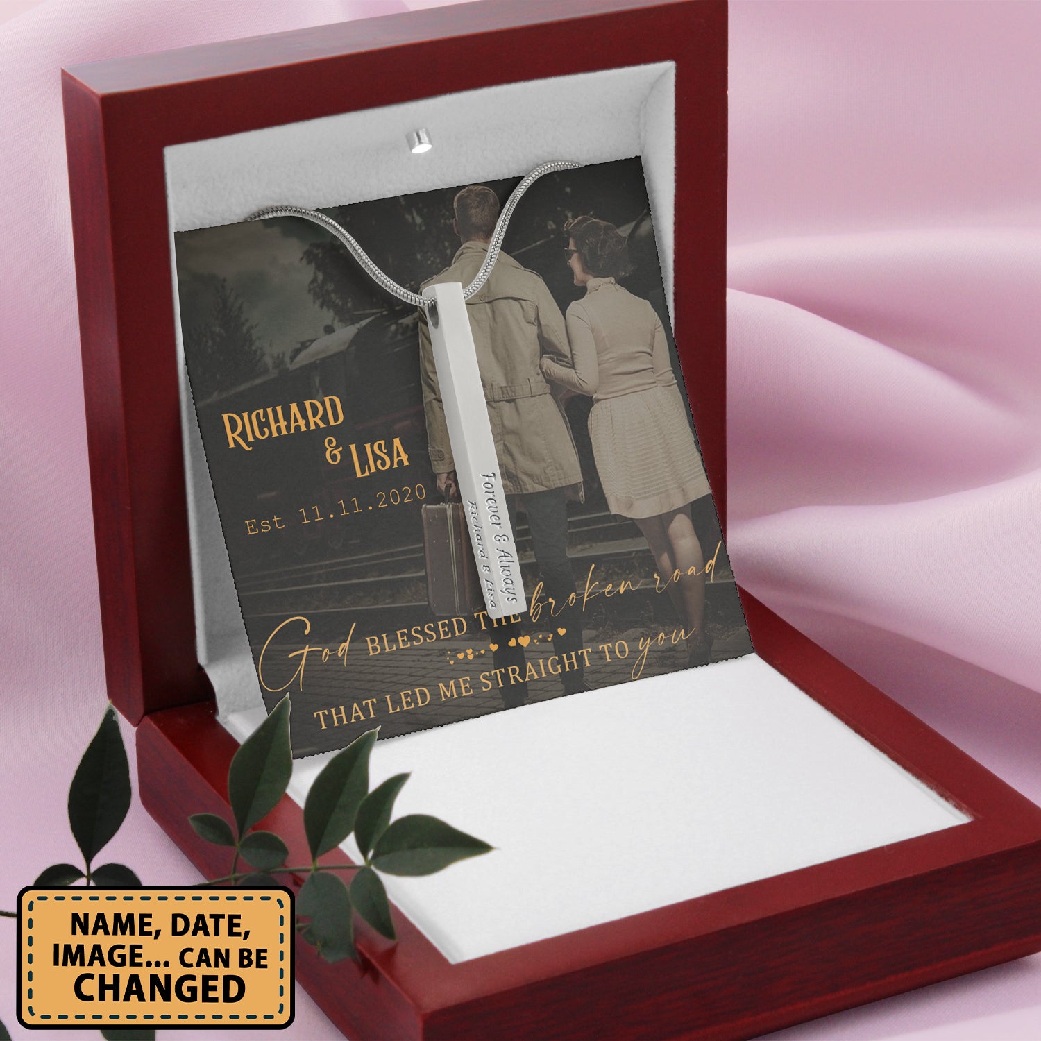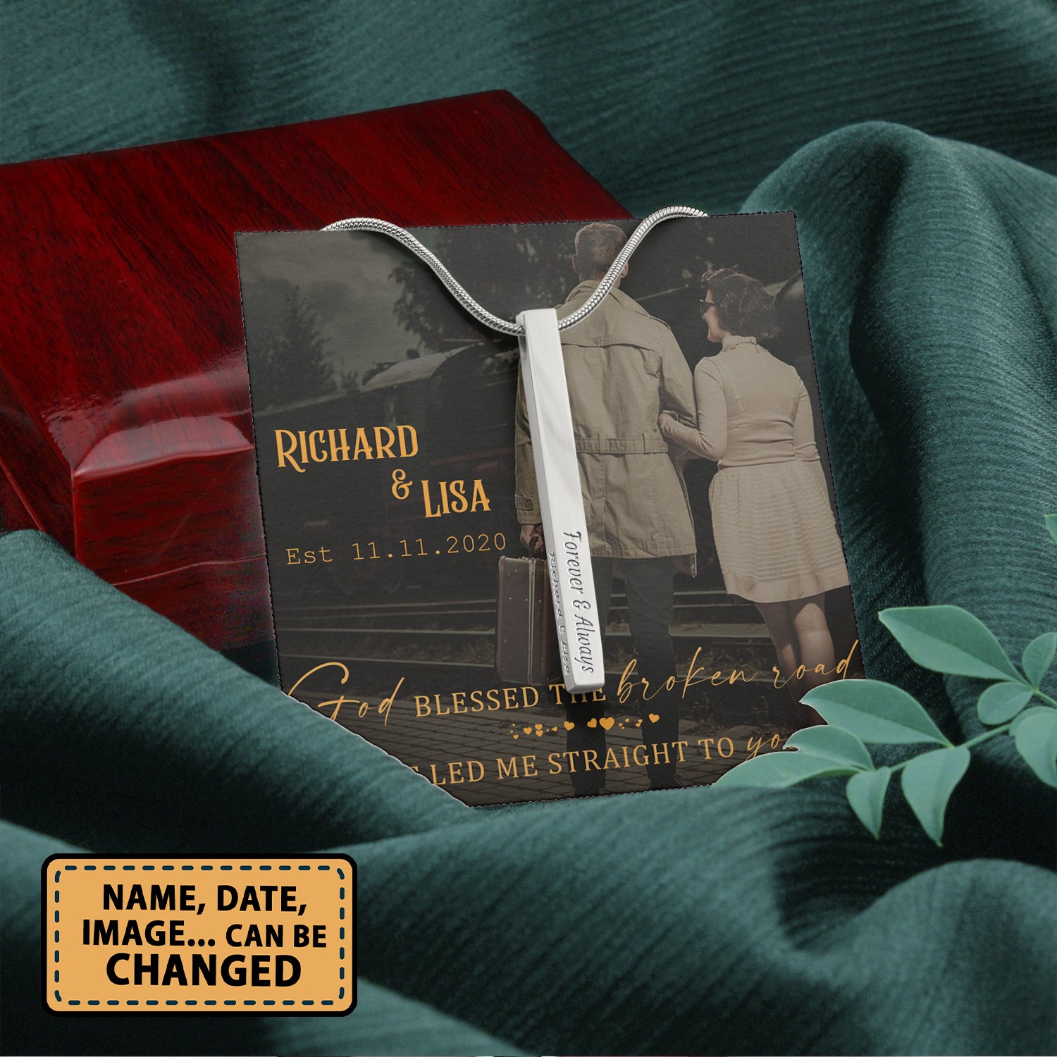 Couple God Blessed The Broken Road 11 – Stainless Steel Vertical Bar Necklace Personalizedwitch For Husband And Wife