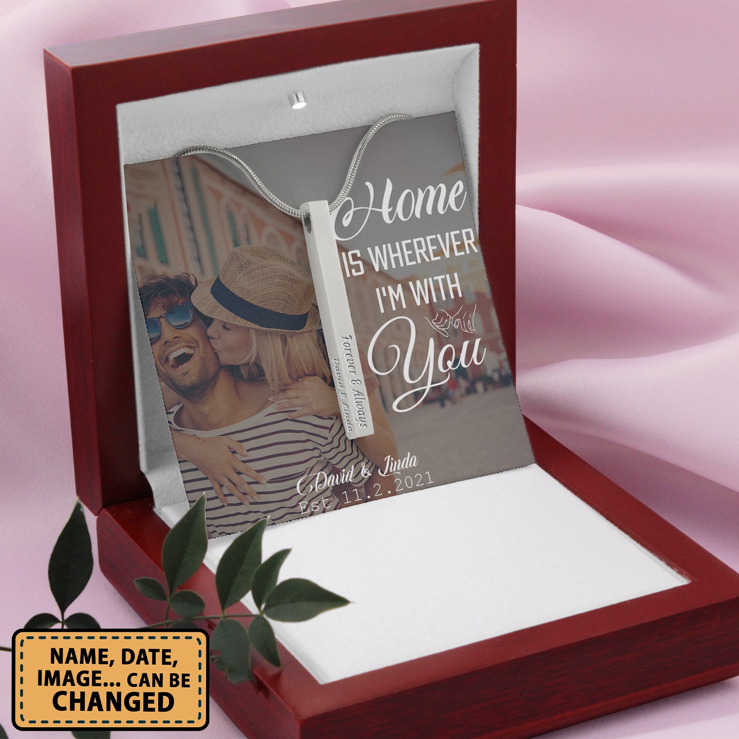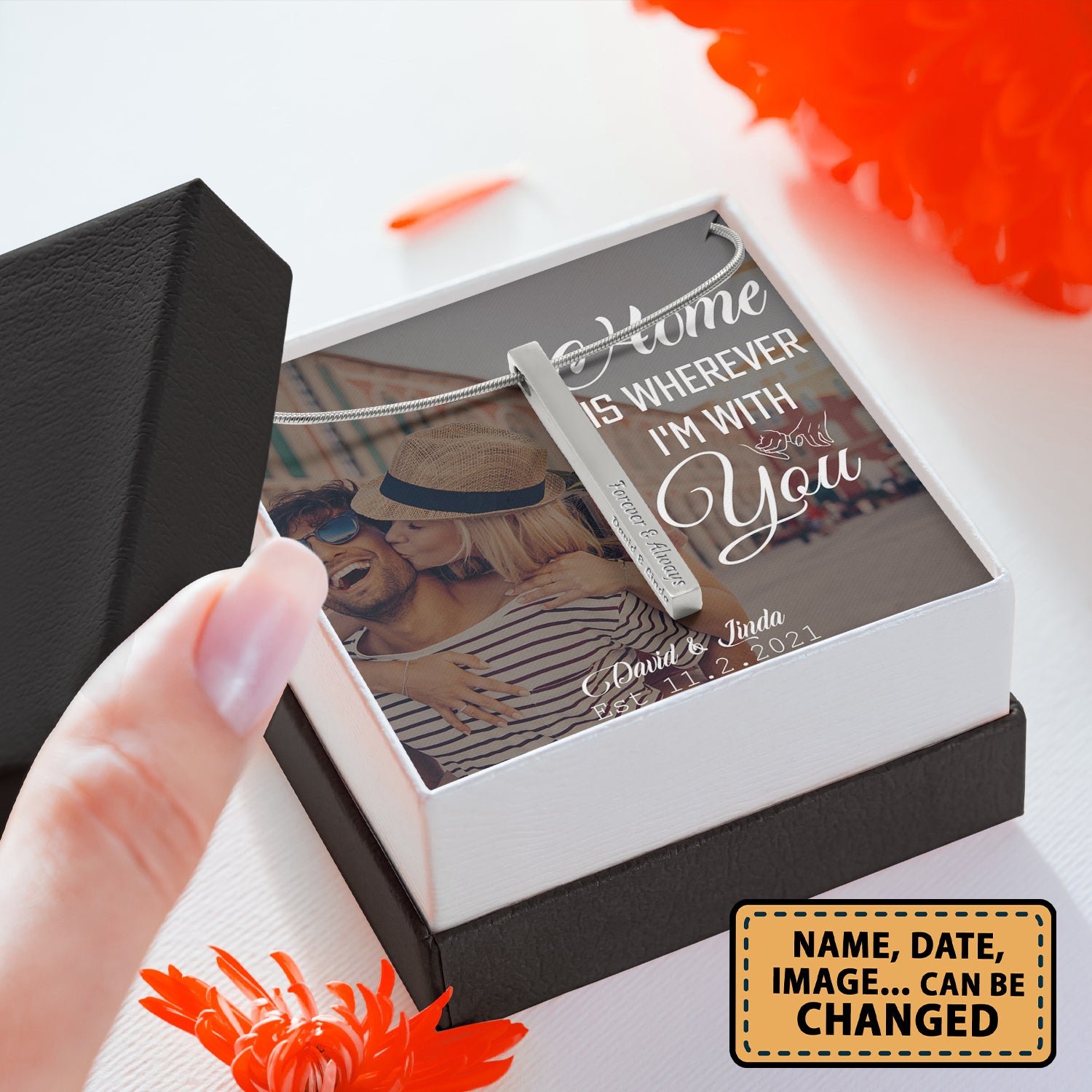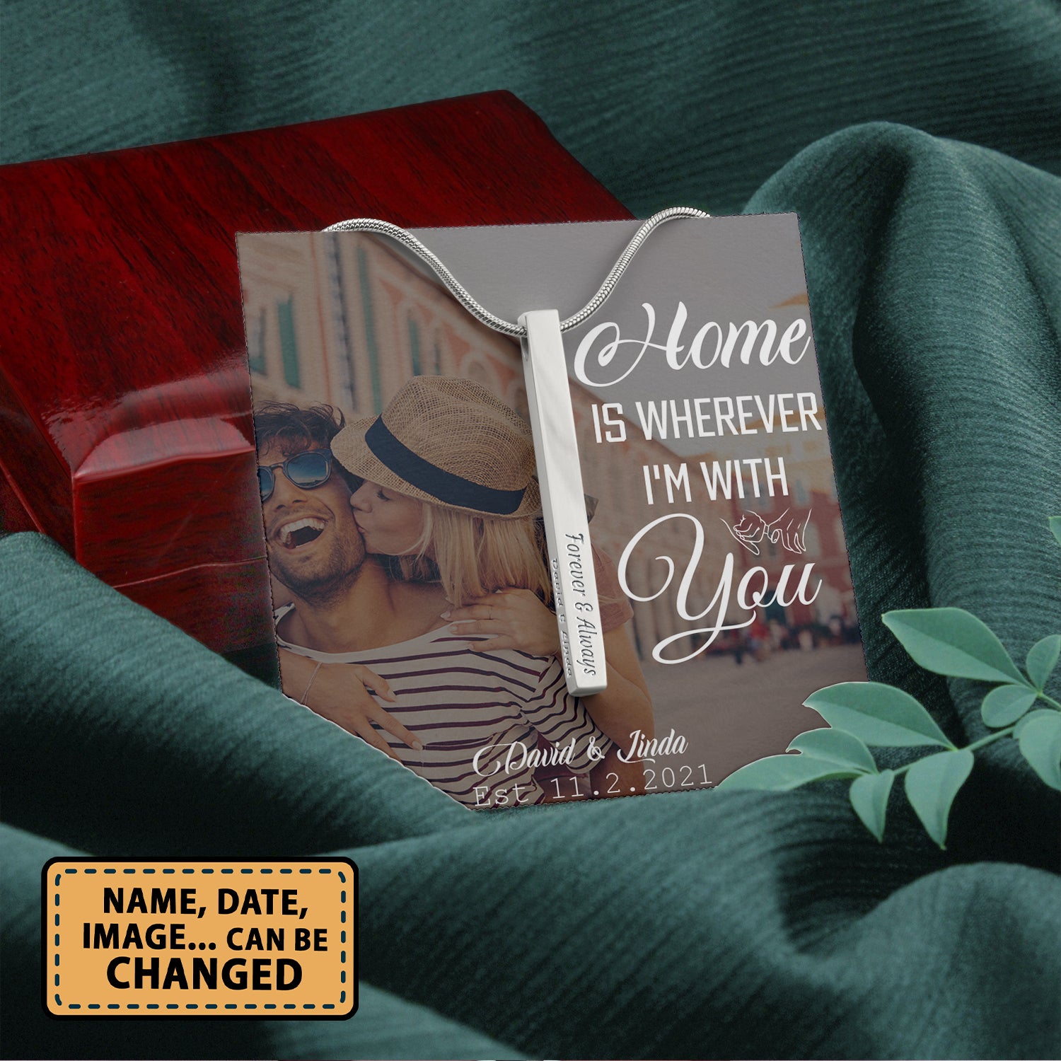 Couple Home Is Wherever I’M With You – Stainless Steel Vertical Bar Necklace Personalizedwitch For Husband From Wife
