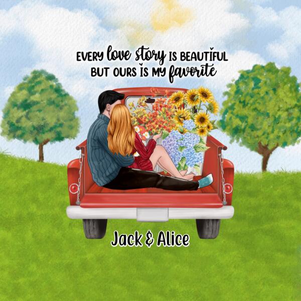 Couple Sitting On Car – Personalized Pillow For Couples, For Her, For Him, Valentine’S Day