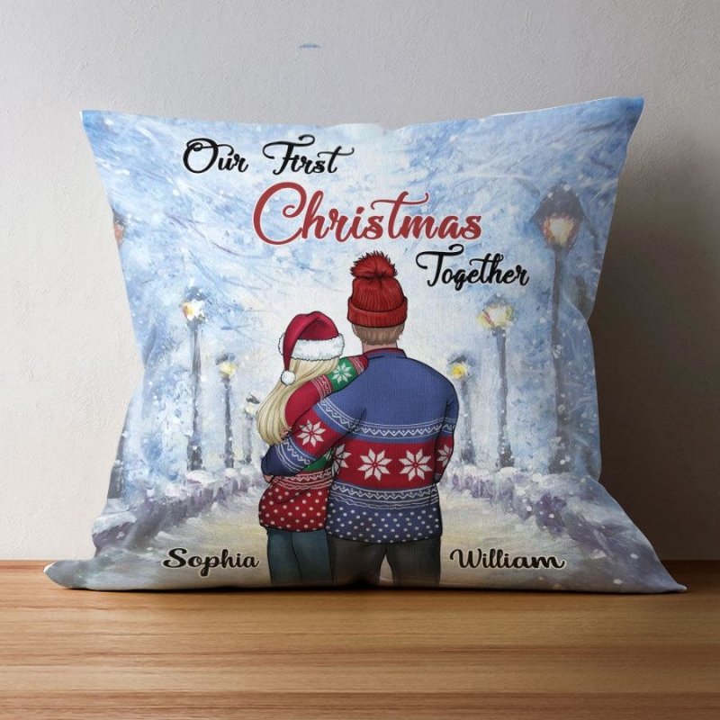 So whether you're looking to show off your own name or create a personalized gift for someone special, LateAndLow Store has got you covered. Start designing your own custom Couple Snowy Street First Christmas Personalized Christmas Pillow For Couple print-on-demand product today, and let us bring your vision to life!