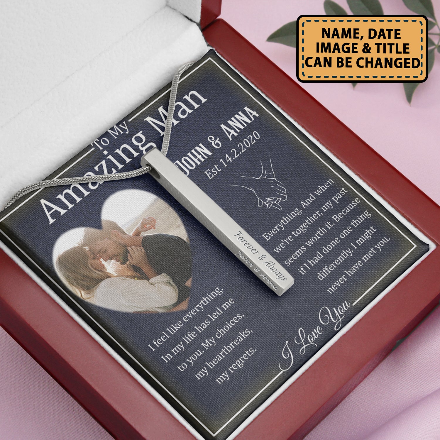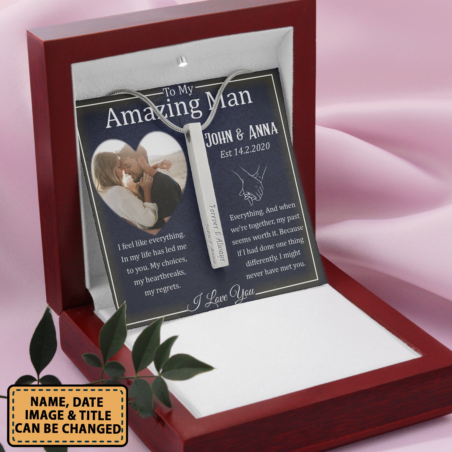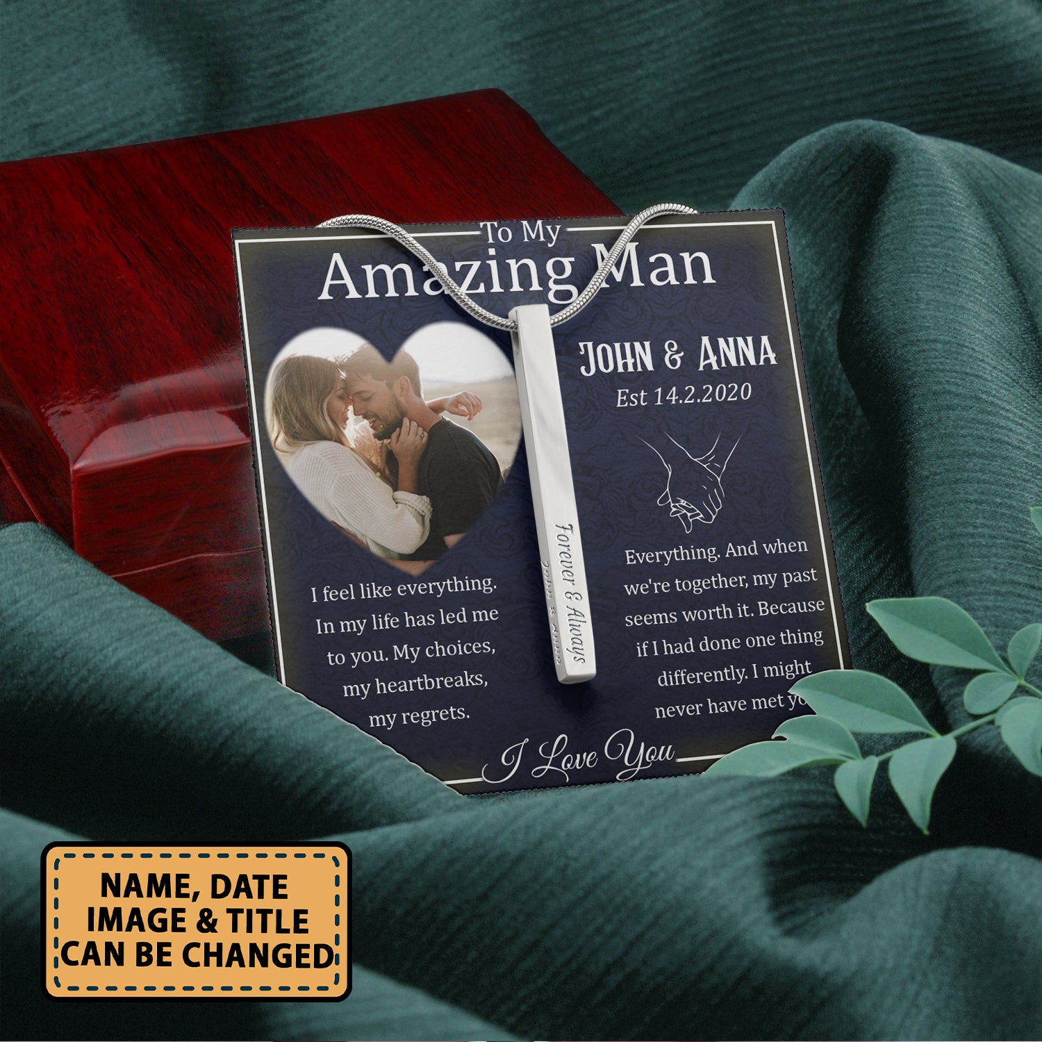 Couple To My Amazing Man I Feel Like Everything 6 – Stainless Steel Vertical Bar Necklace Personalizedwitch For Husband From Wife