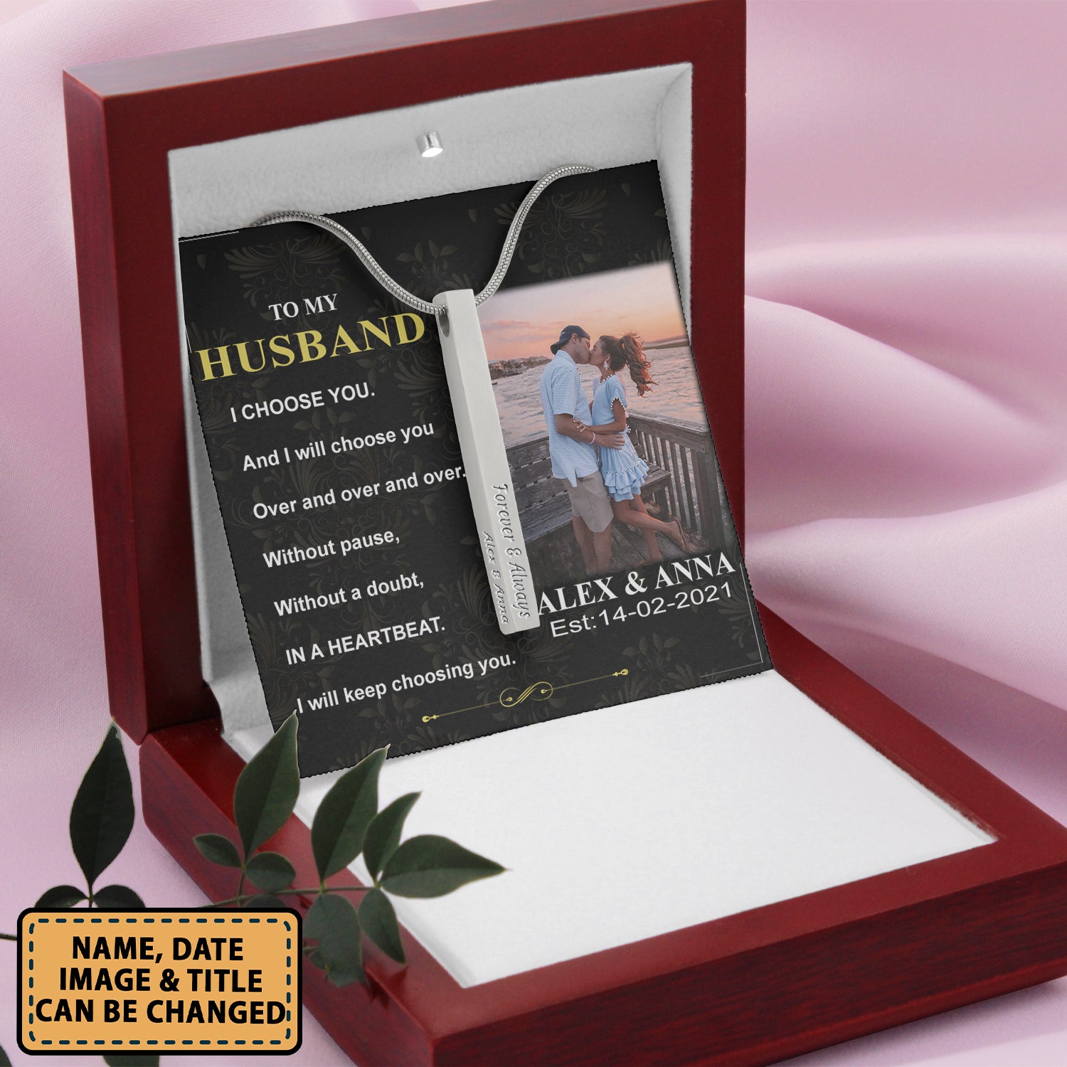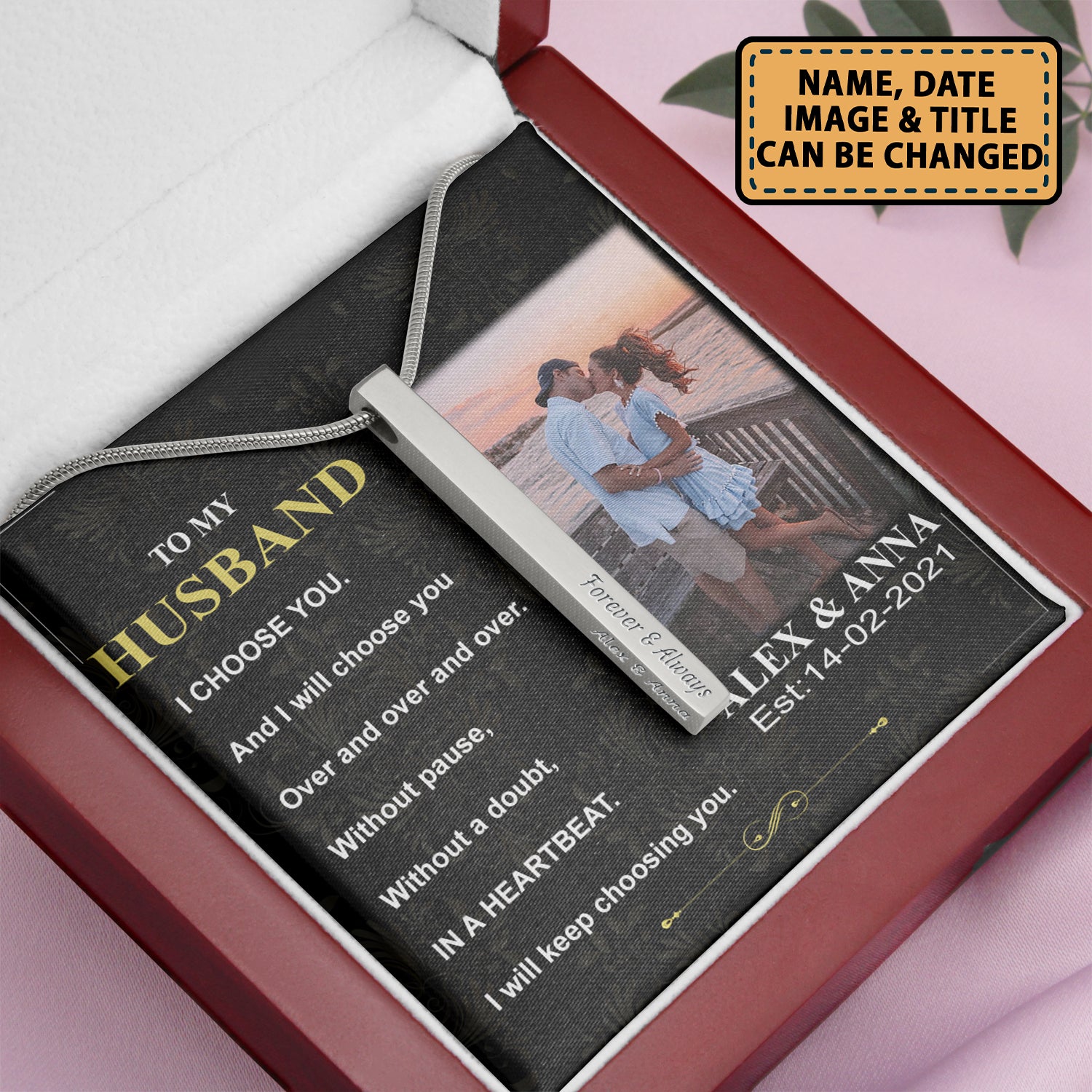 Couple To My Husband I Choose You 1 – Stainless Steel Vertical Bar Necklace Personalizedwitch For Husband From Wife