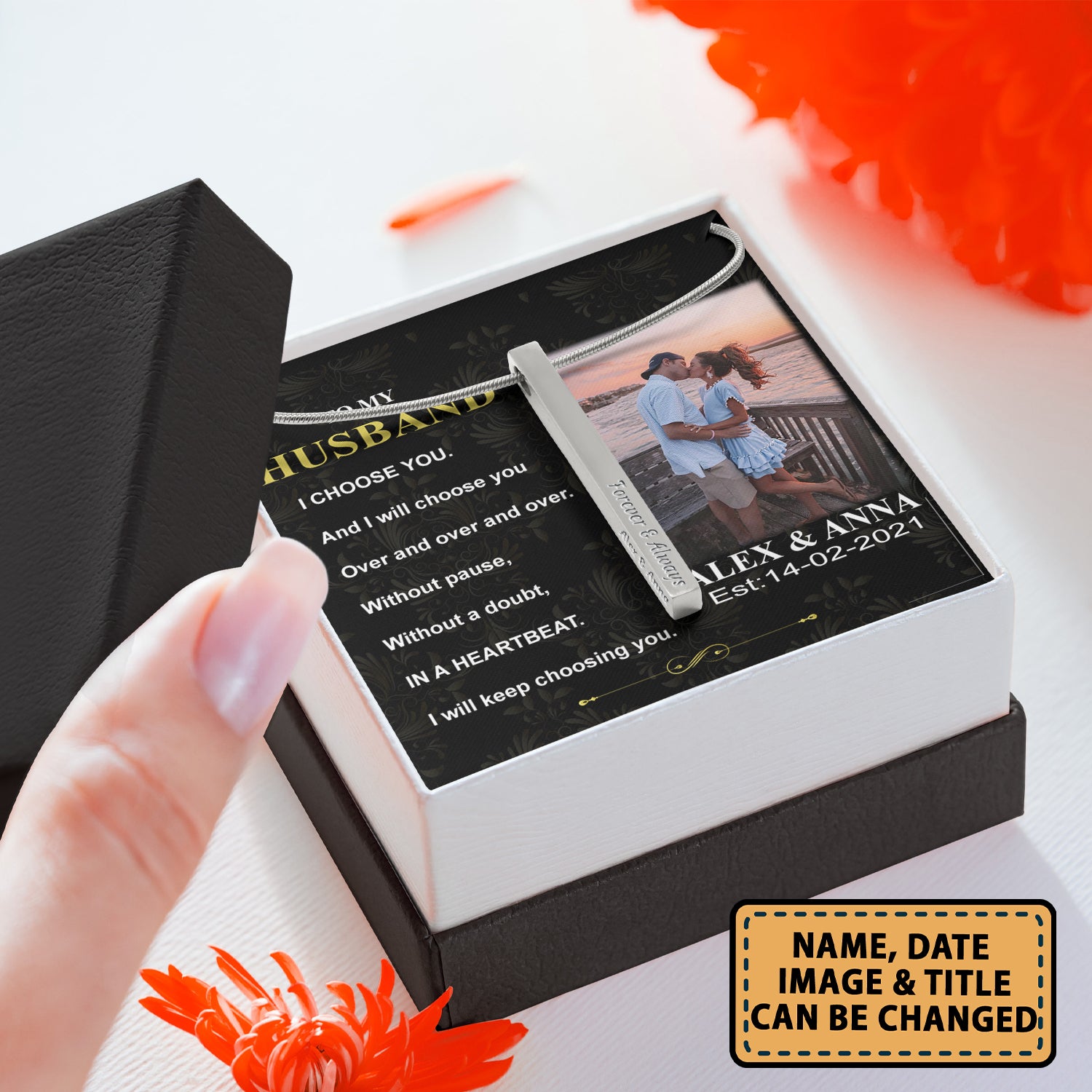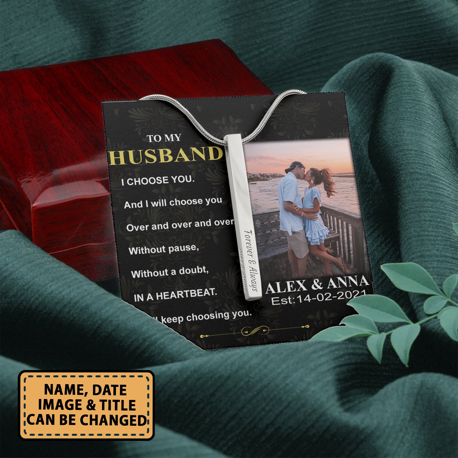 At Cotenis Store, we offer a fantastic range of print-on-demand products that can be personalized with your name. Our Couple To My Husband I Choose You 1 – Stainless Steel Vertical Bar Necklace Personalizedwitch For Husband From Wife print-on-demand products are the perfect way to add a personal touch to your wardrobe or to create a unique and thoughtful gift for someone special.