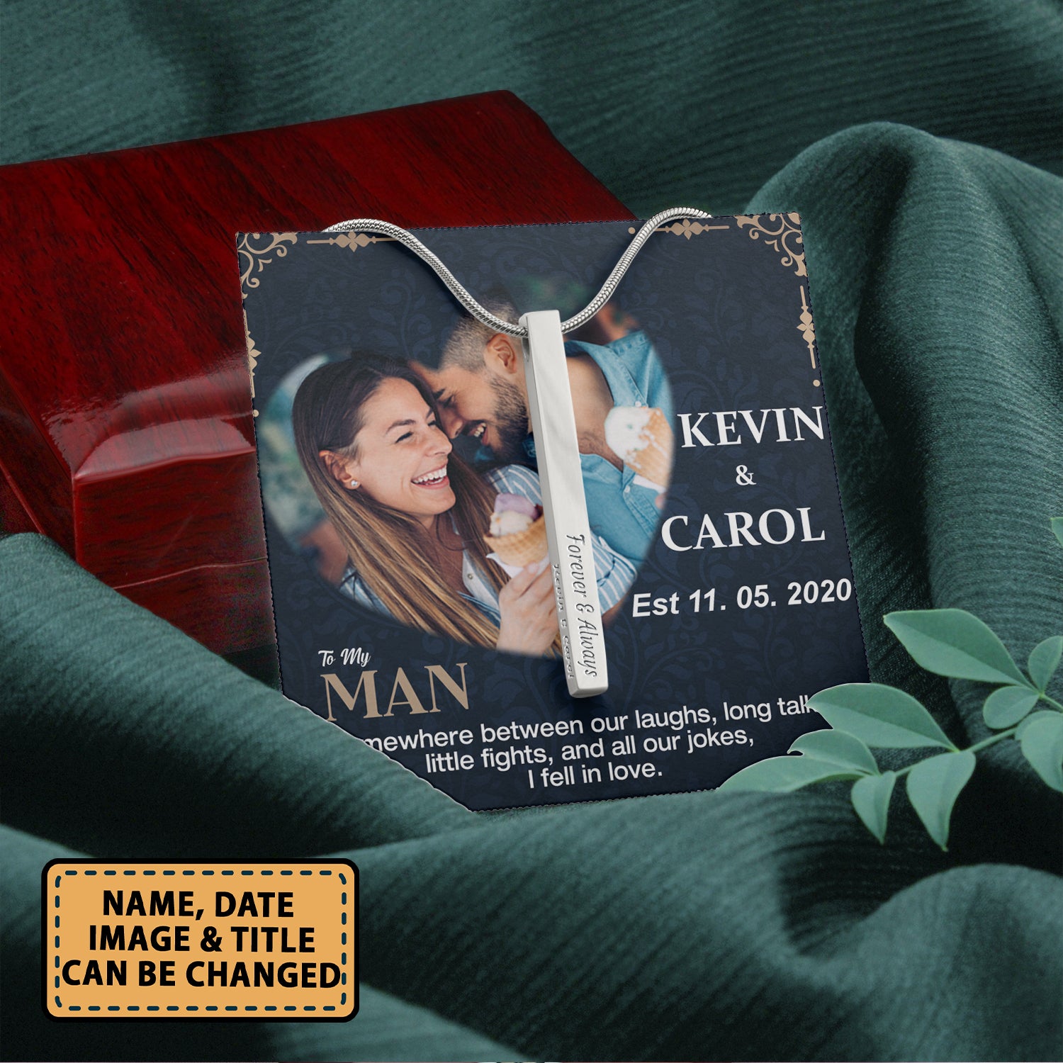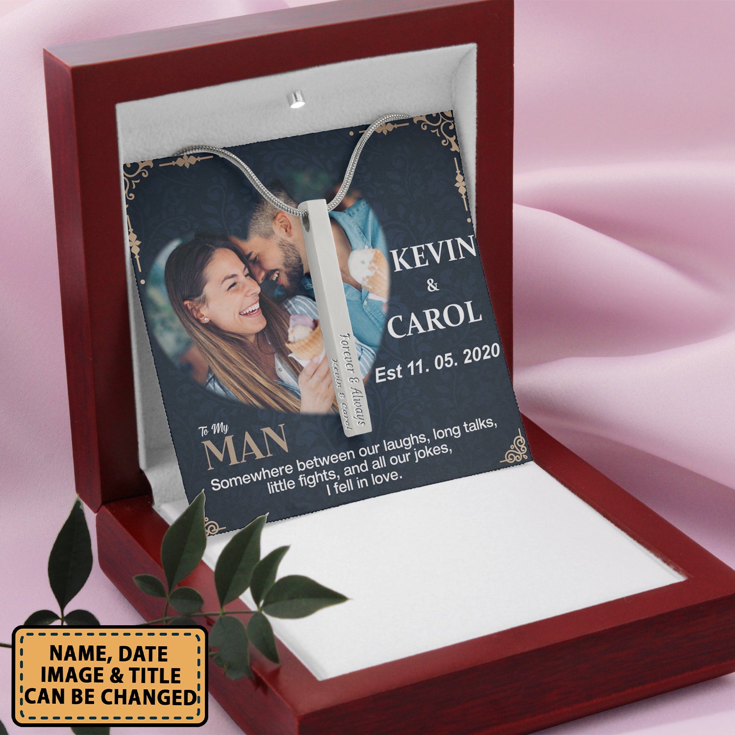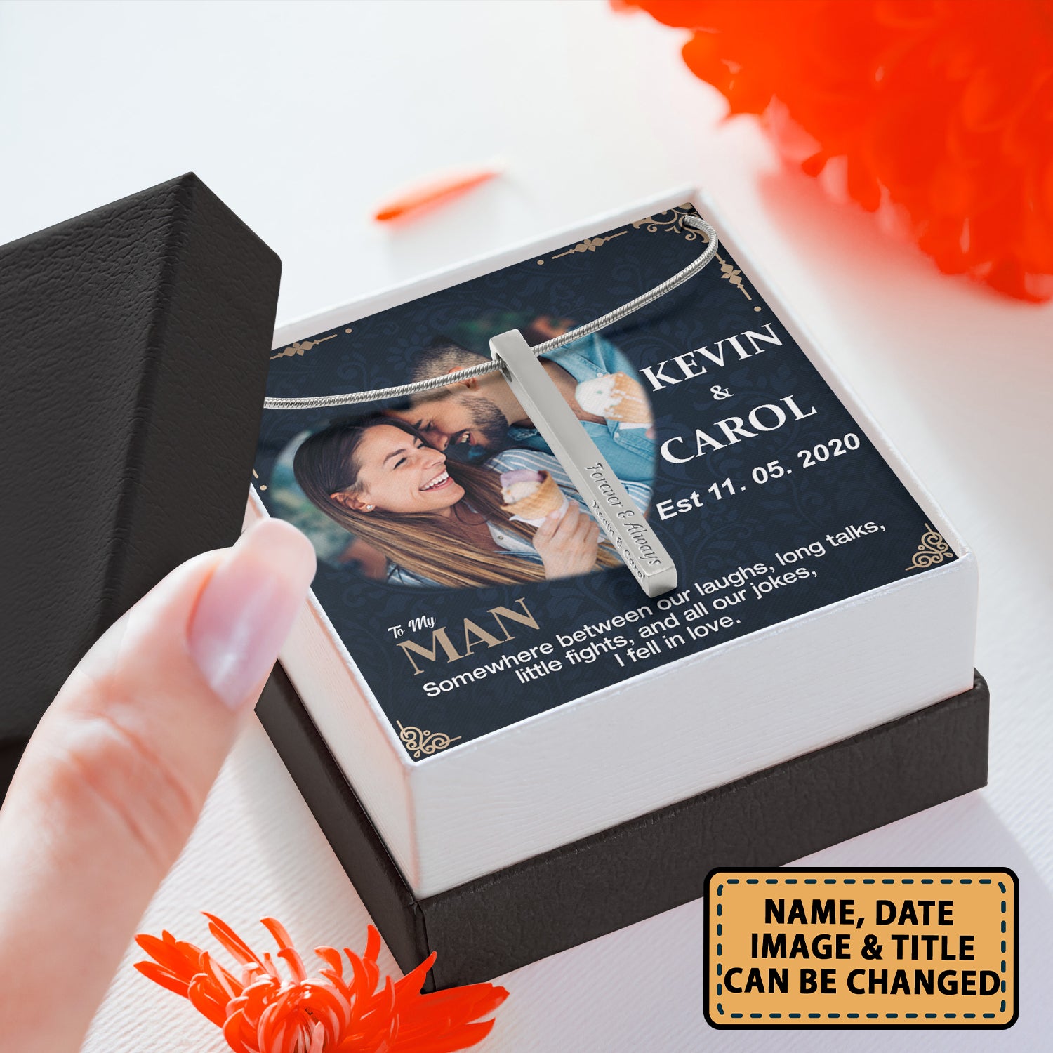 Couple To My Man Somewhere Between Our Laughs 4 – Stainless Steel Vertical Bar Necklace Personalizedwitch For Husband From Wife