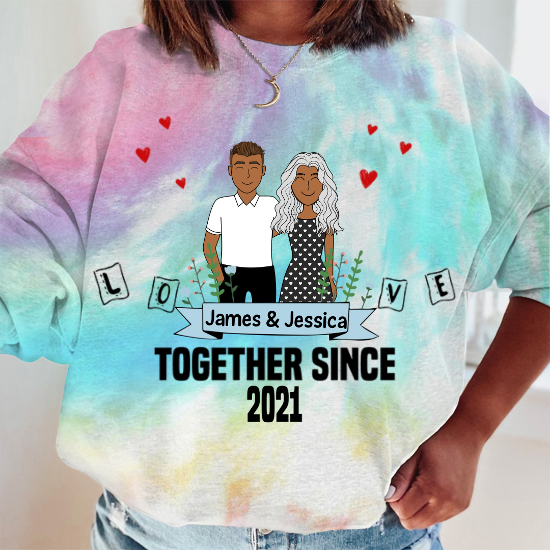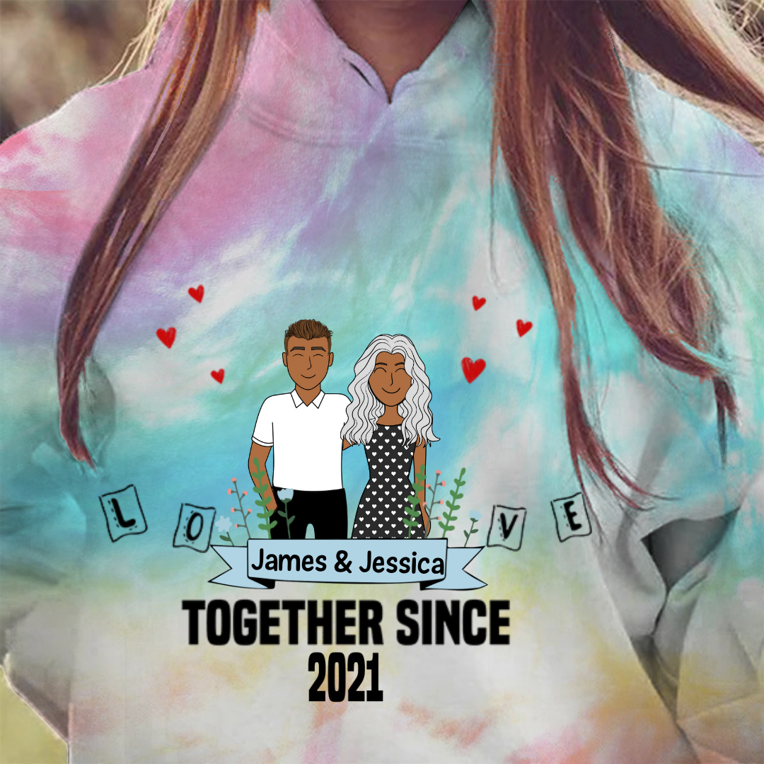 Couple Together Valentine Personalized Tie Dye Shirt Sweatshirt Hoodie Ap702