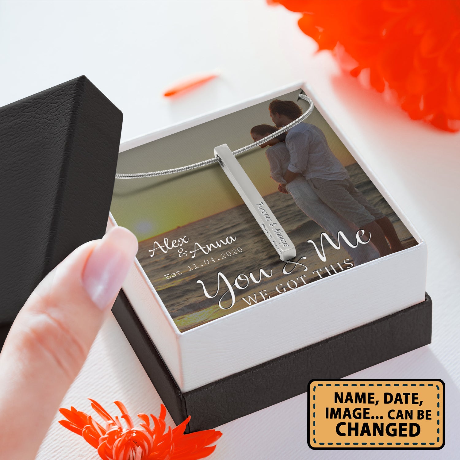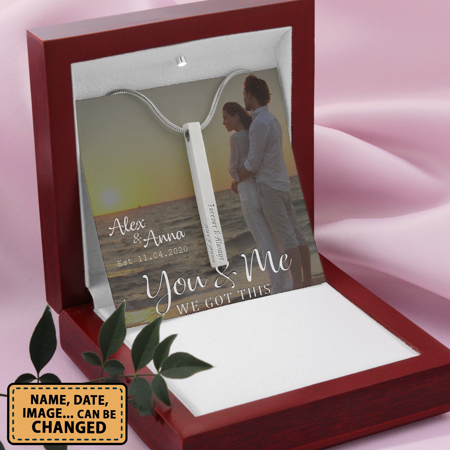 So whether you're looking to show off your own name or create a personalized gift for someone special, LateAndLow Store has got you covered. Start designing your own custom Couple You And Me We Got This – Stainless Steel Vertical Bar Necklace Personalizedwitch For Husband From Wife print-on-demand product today, and let us bring your vision to life!