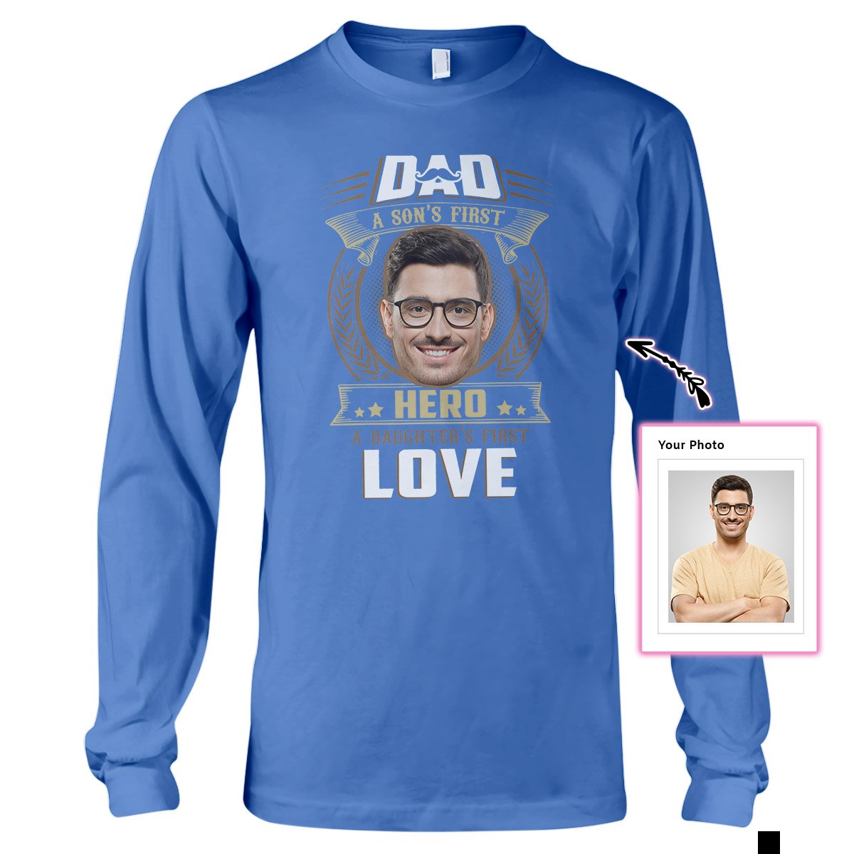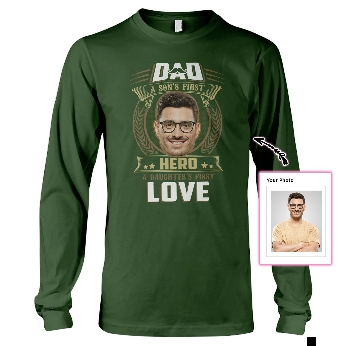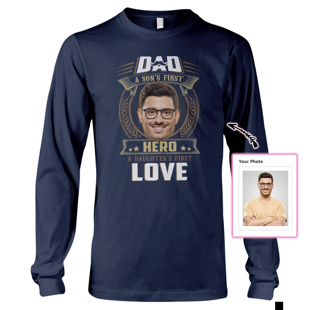 Custom Face Dad Son’S First Hero, Daughter’S First Love Ez14 2710 Custom Long Sleeve T-Shirt