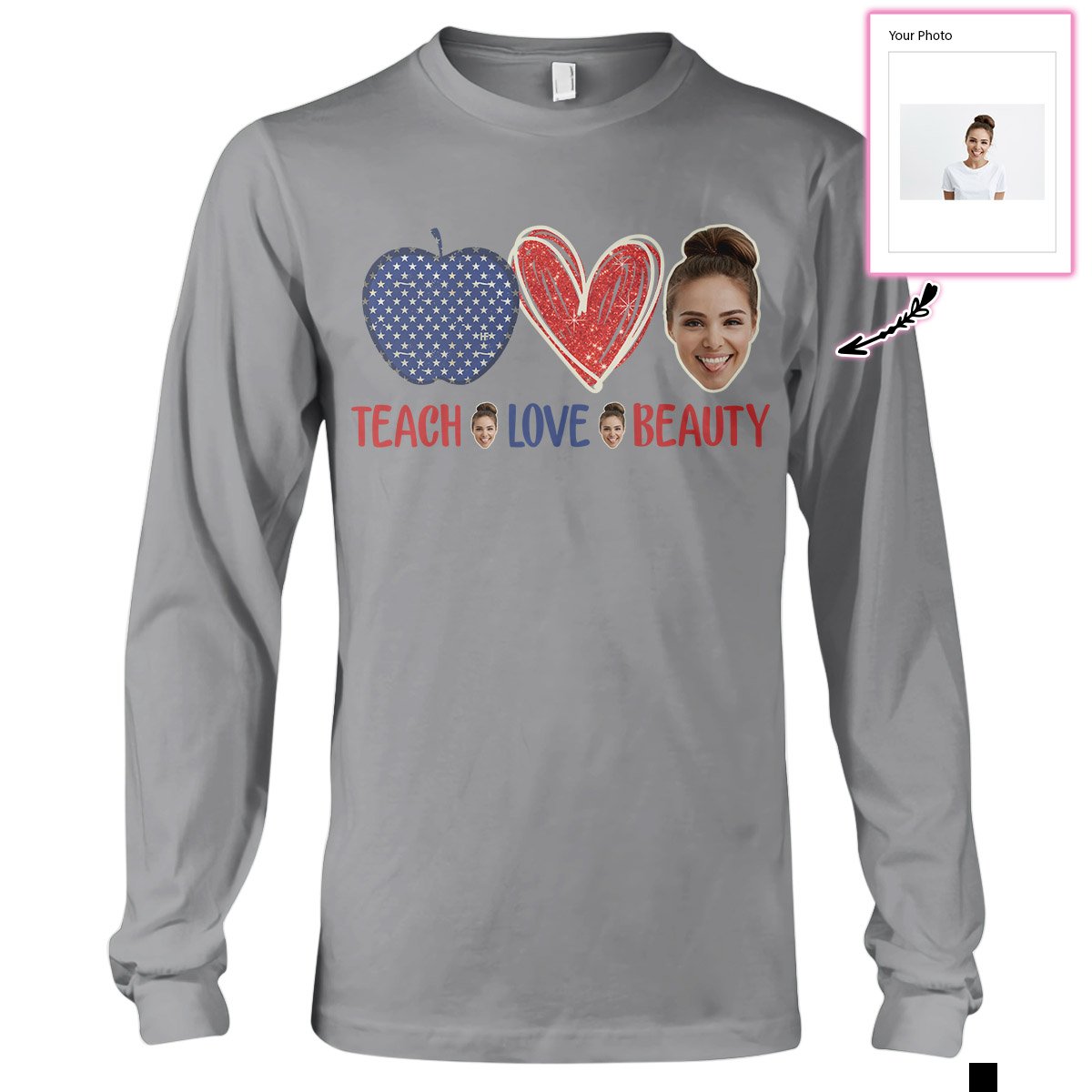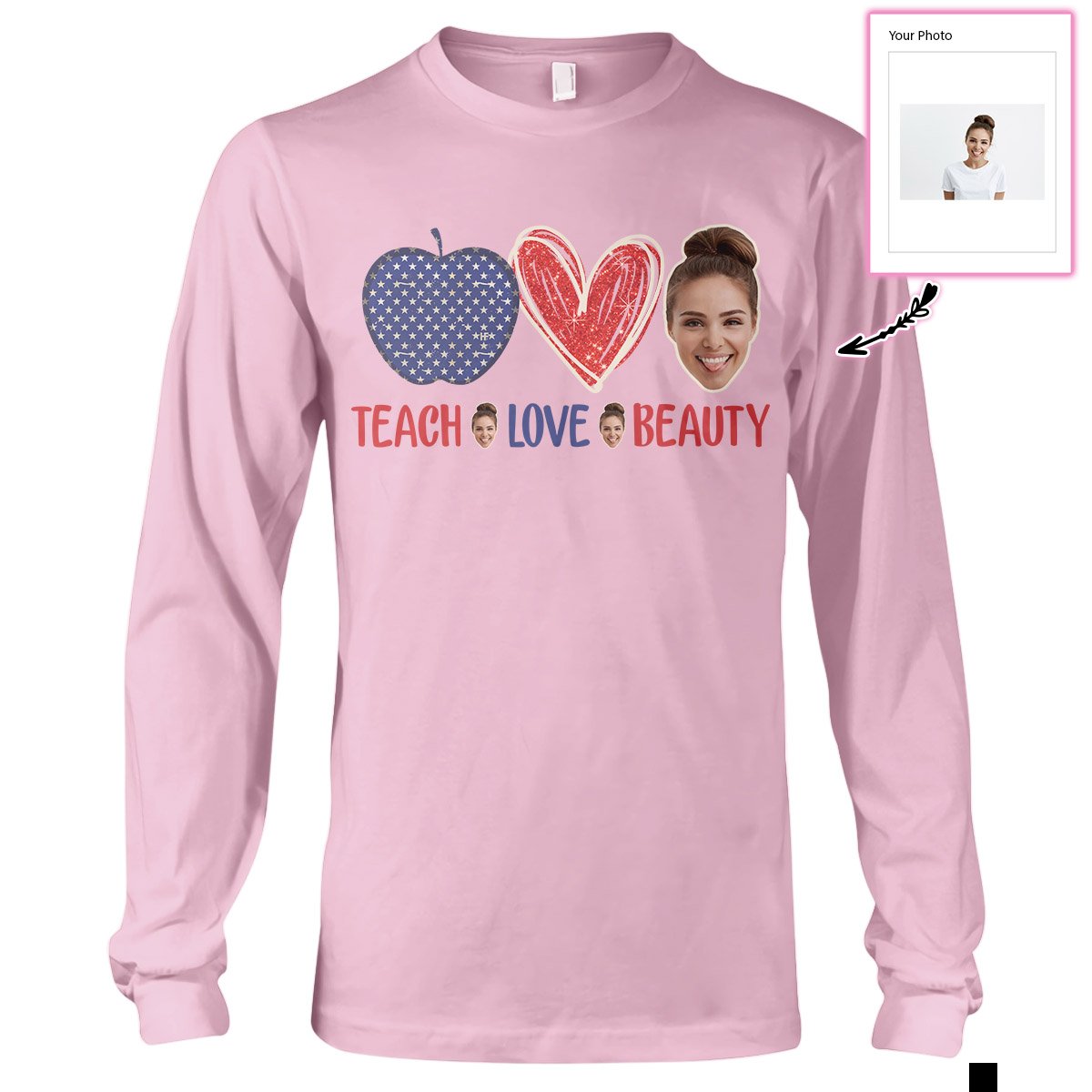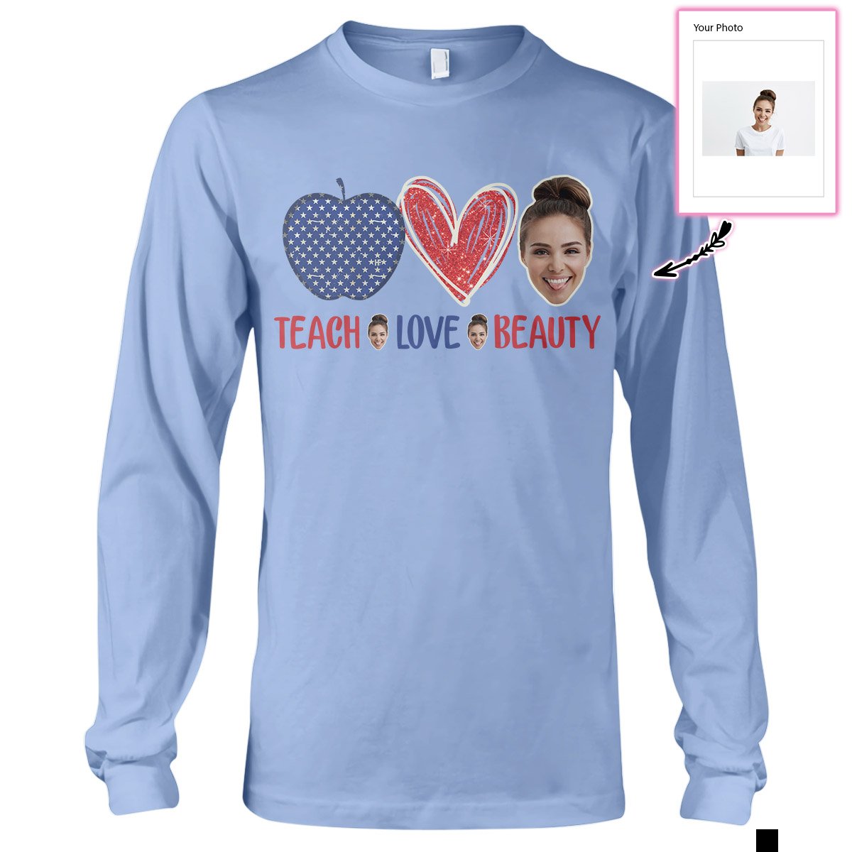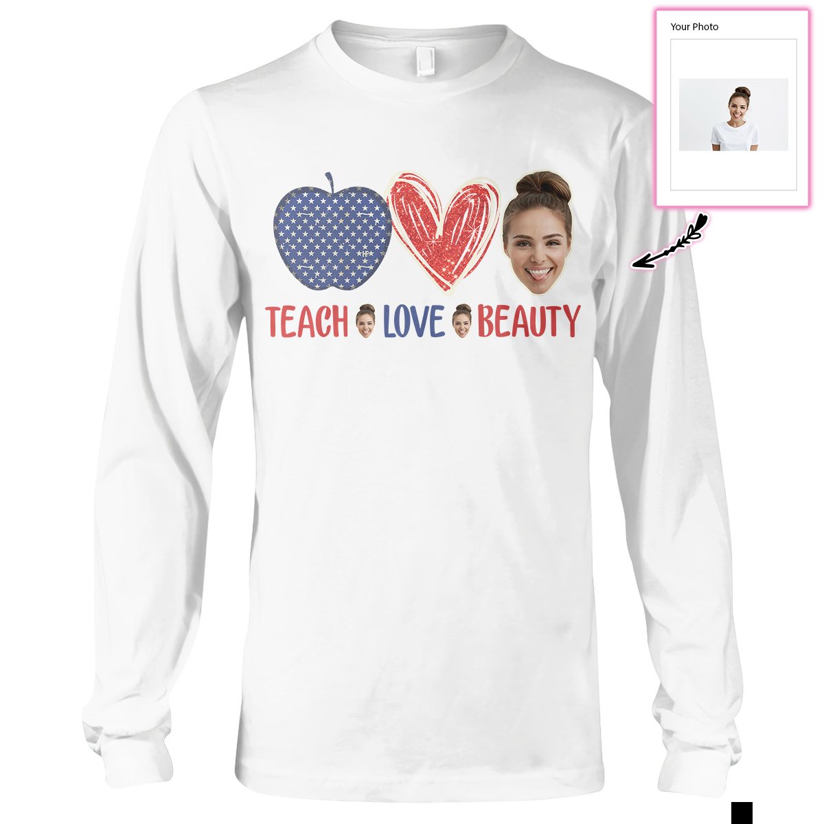 Our print-on-demand products are made with the highest quality materials, ensuring that your personalized Custom Face Teach Love Beauty Ez14 2710 Custom Long Sleeve T-Shirt design looks great and feels comfortable. You can wear your new custom product with pride or give it as a unique and memorable gift that will be cherished for years to come.