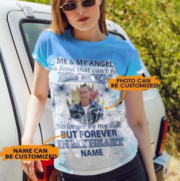 Custom Memorial All Over Print T-Shirt For Lost Loved Ones Me My Angel A Bond Butterfly All Over Print T-Shirt Blue M223