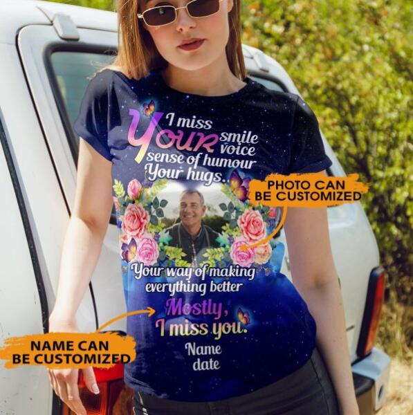 At Cotenis Store, we offer a fantastic range of print-on-demand products that can be personalized with your name. Our Custom Memorial All Over Print T-Shirt With Picture For Lost Loved Ones I Miss Your Smile Butterfly All Over Print T-Shirt Blue M239 print-on-demand products are the perfect way to add a personal touch to your wardrobe or to create a unique and thoughtful gift for someone special.