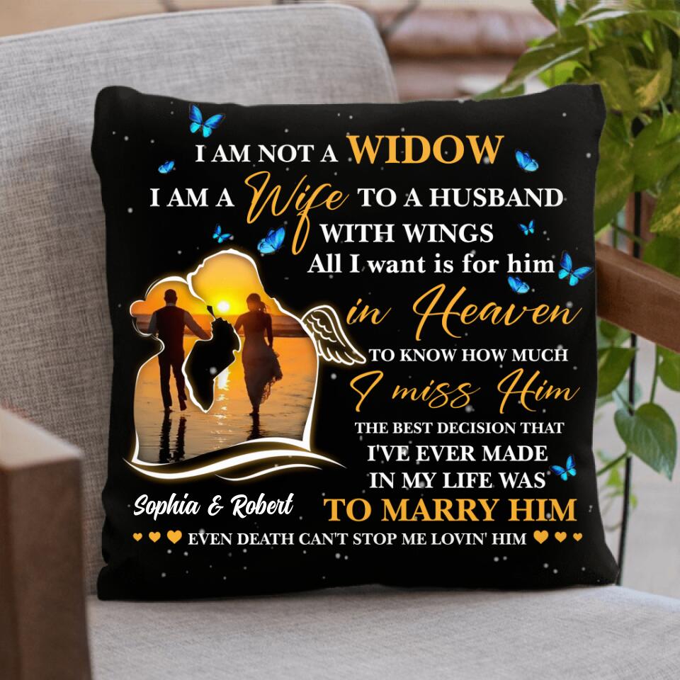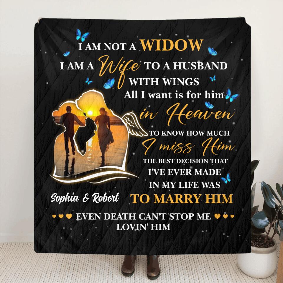 Custom Personalized Couple Quilt/Fleece Blanket & Pillow Cover – Memorial Gift Idea For Couple – I Am A Wife To A Husband With Wings