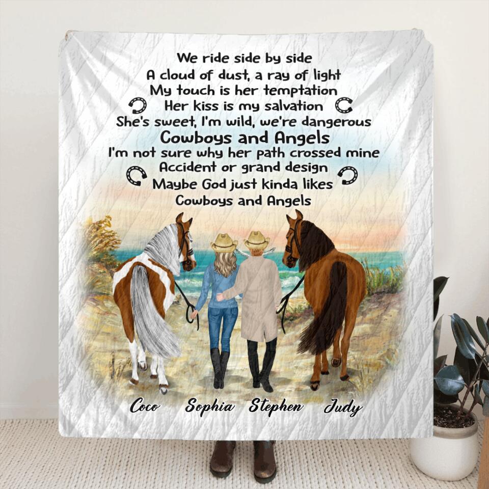 Custom Personalized Horse Couple Fleece/ Quilt Blanket – Gift Idea For Couples, For Her, For Him, Horse Lovers – We Ride Side By Side