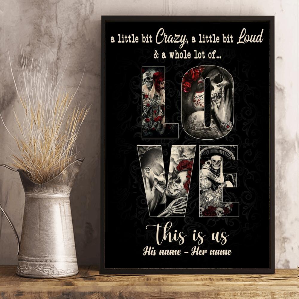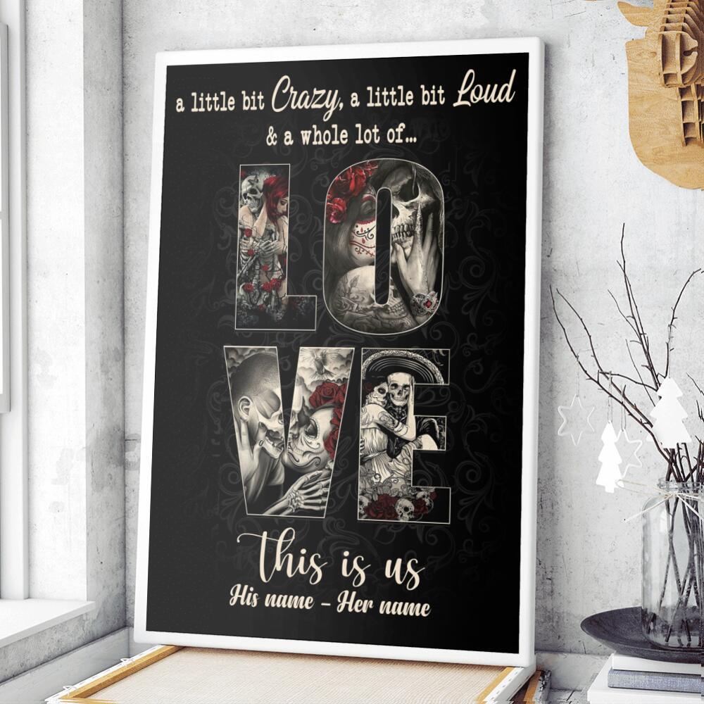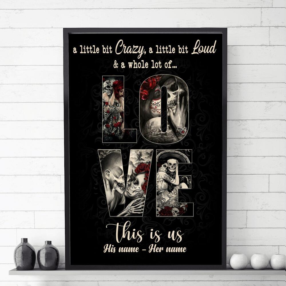 So whether you're looking to show off your own name or create a personalized gift for someone special, LateAndLow Store has got you covered. Start designing your own custom Custom Skull Couple This Is Us Vertical Poster print-on-demand product today, and let us bring your vision to life!