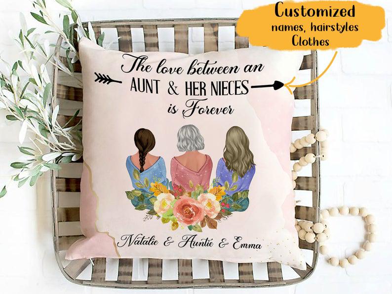 Custom The Love Between An Aunt And Her Nieces Is Forever Throw Pillow, Auntie Niece