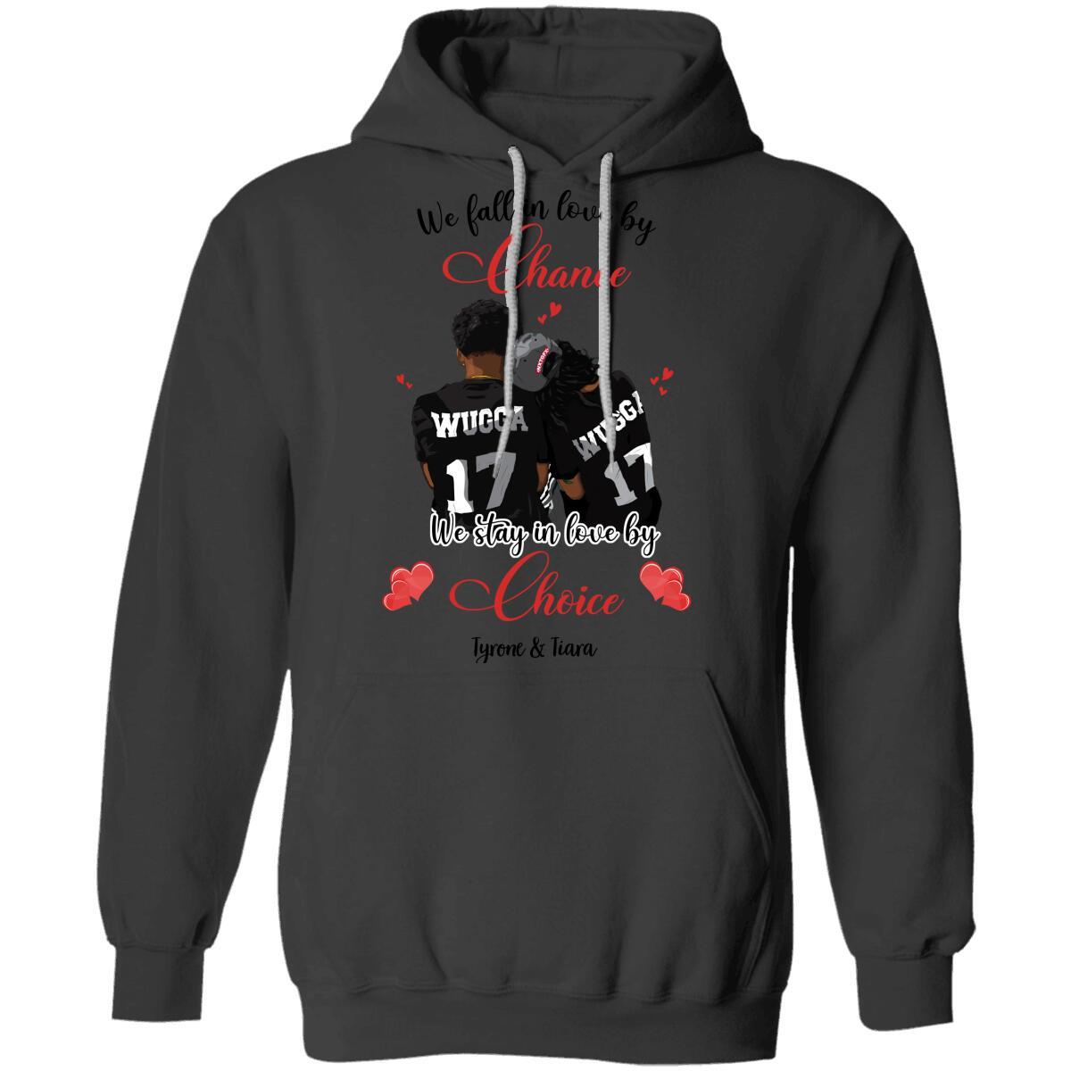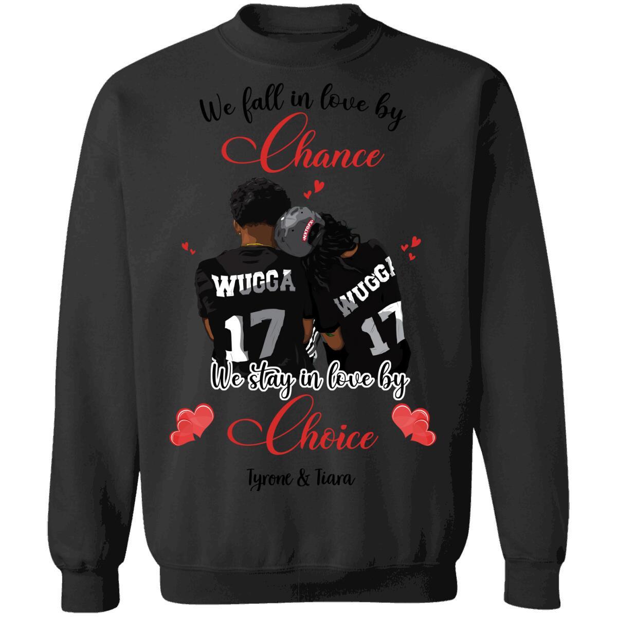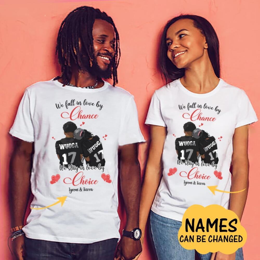 So whether you're looking to show off your own name or create a personalized gift for someone special, LateAndLow Store has got you covered. Start designing your own custom Custom Valentine We Stay In Love By Choice Front Printed T-Shirt print-on-demand product today, and let us bring your vision to life!