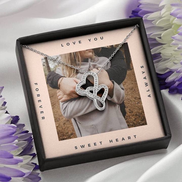 Custom Valentines Day Gifts For Her, Double Heart Necklace For Girlfriend/Wife, Personalized Couple Photo