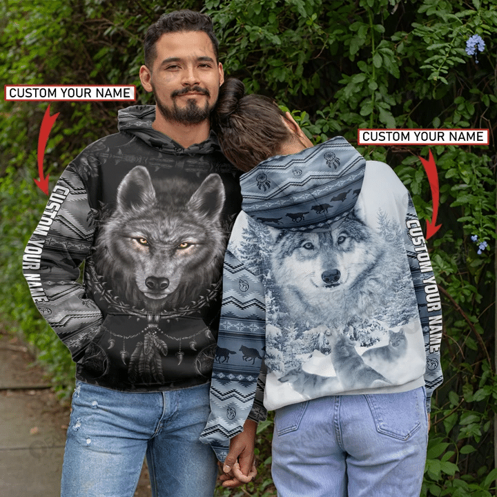 So whether you're looking to show off your own name or create a personalized gift for someone special, LateAndLow Store has got you covered. Start designing your own custom Custom Your Name Wolf Pattern Couple Hoodie Av000238 print-on-demand product today, and let us bring your vision to life!