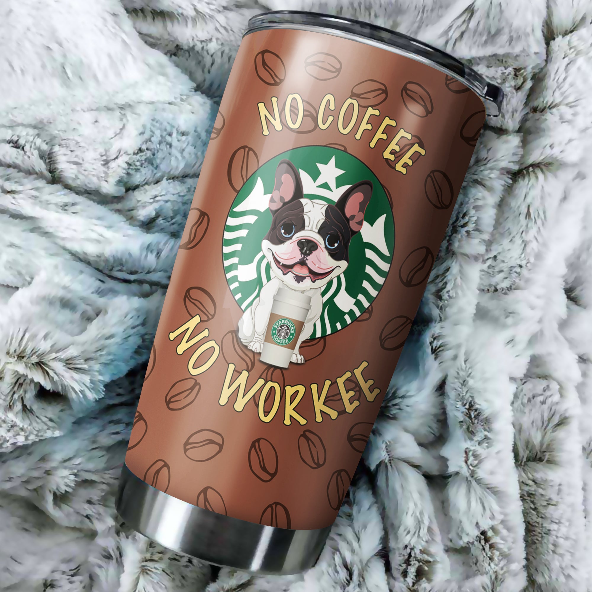 Customize Stainless Steel Tumbler – No Coffee No Workee – Love French Bulldog
