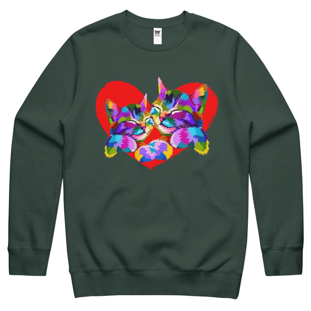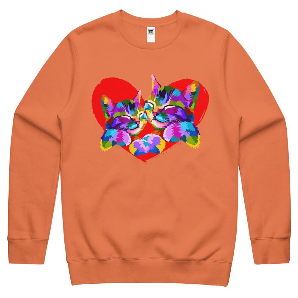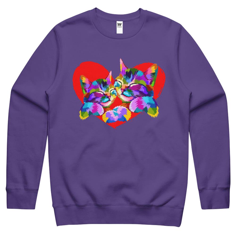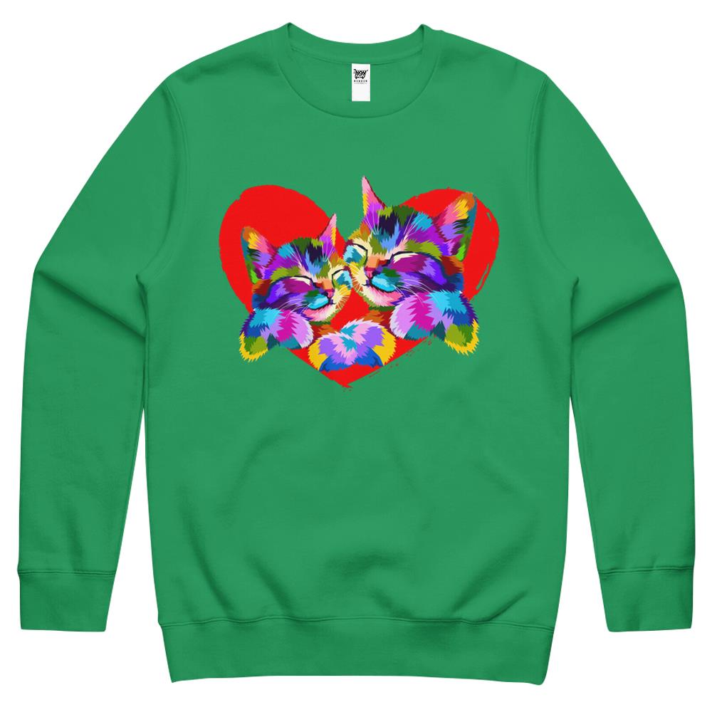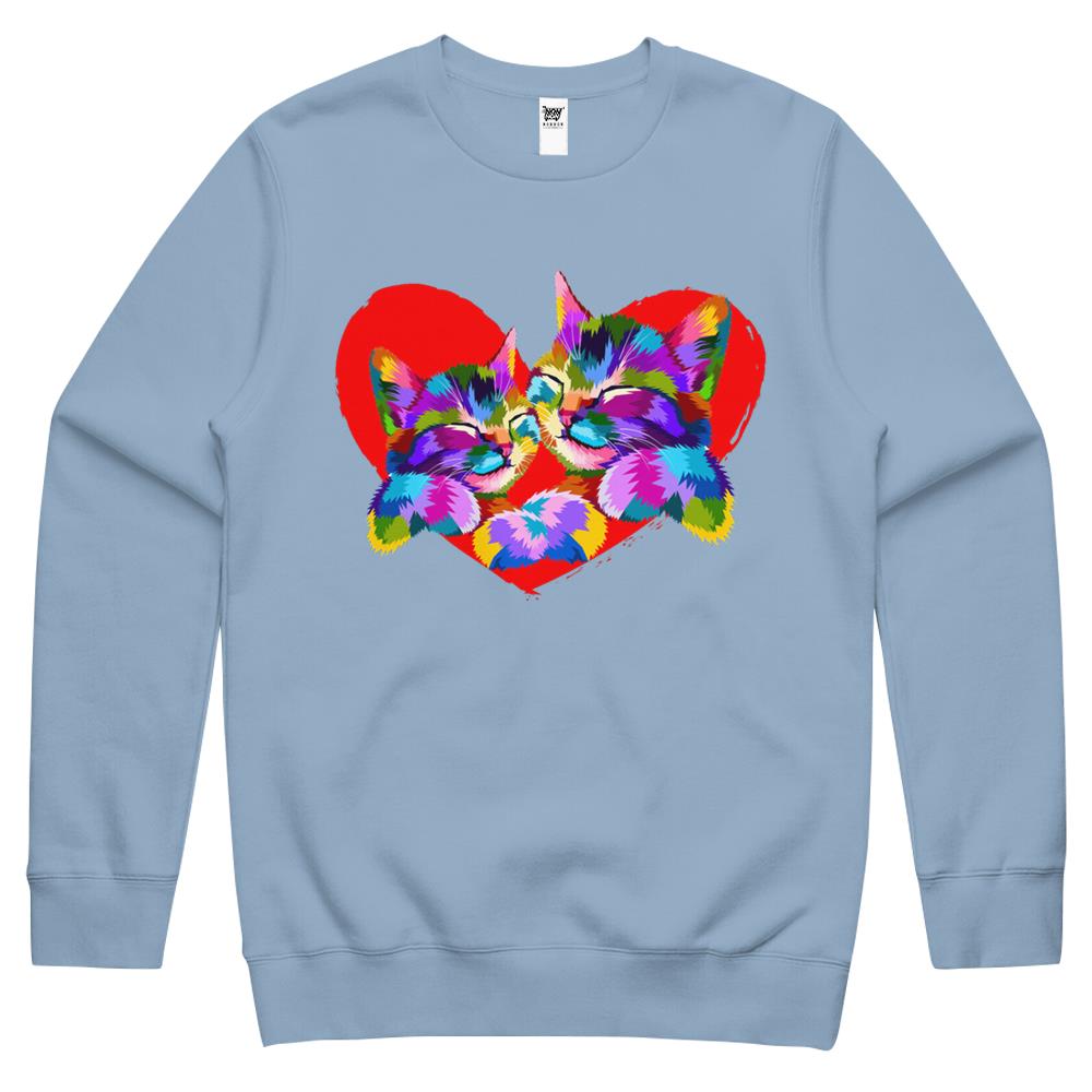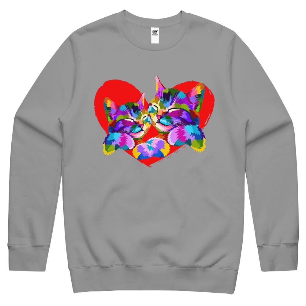 Cute Colorful Kitty With Heart In Love Crewneck Sweatshirt
