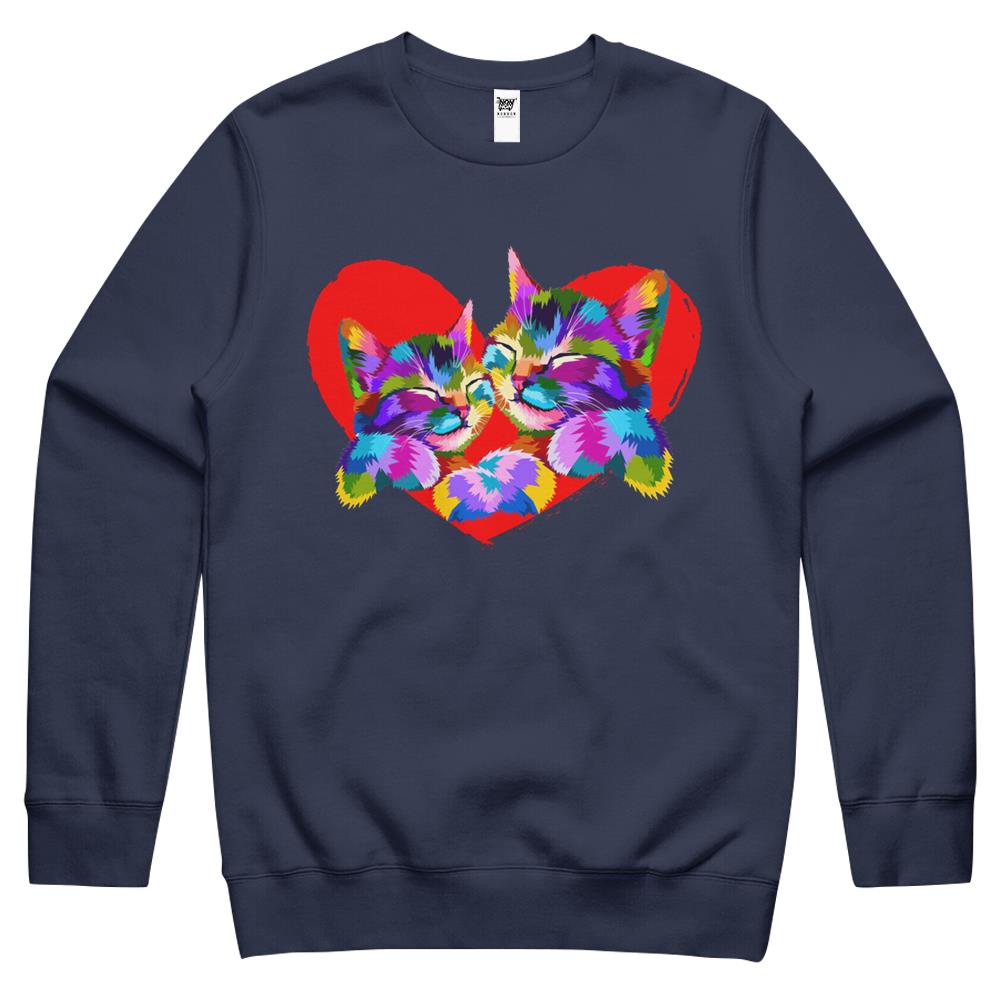 So whether you're looking to show off your own name or create a personalized gift for someone special, LateAndLow Store has got you covered. Start designing your own custom Cute Colorful Kitty With Heart In Love Crewneck Sweatshirt print-on-demand product today, and let us bring your vision to life!