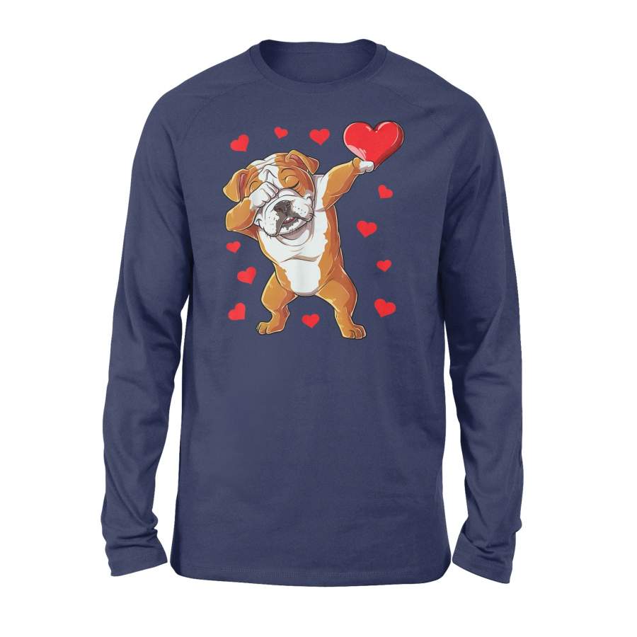 Dabbing English Bulldog Heart Valentines Day Boys Love Dog T-Shirt – Standard Long Sleeve