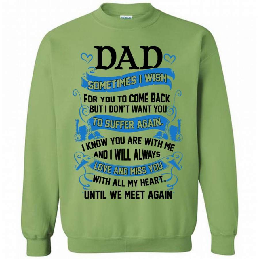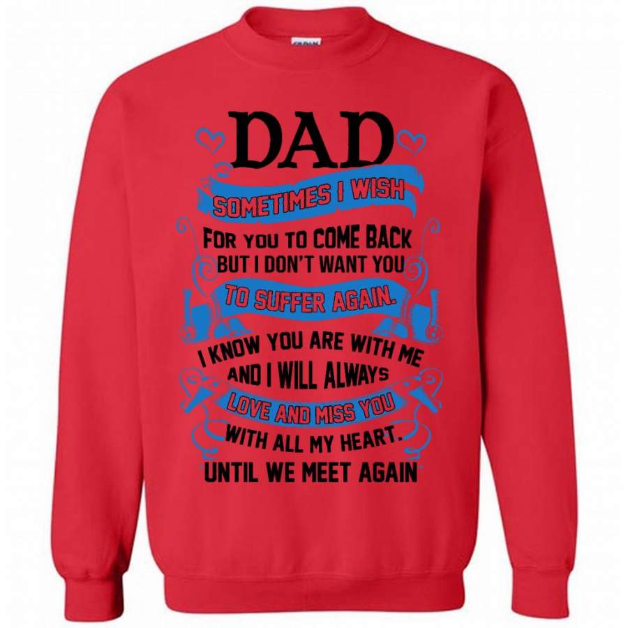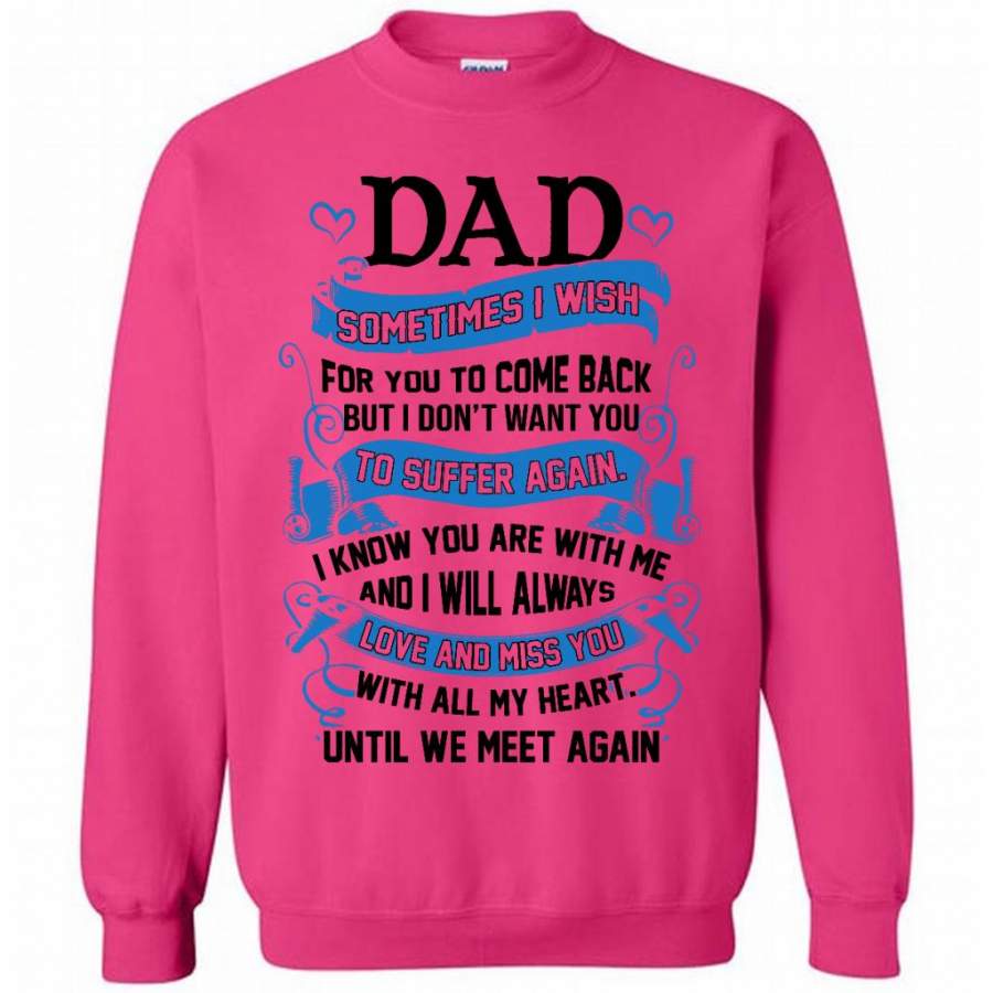 Dad Sometimes I Wish For You To Come Back But I Don’t Want You To Suffer Again I Know You Are With Me And I Will Always Love And Miss You With All My Heart Until We Meet Again (w) – Gildan Crewneck Sweatshirt