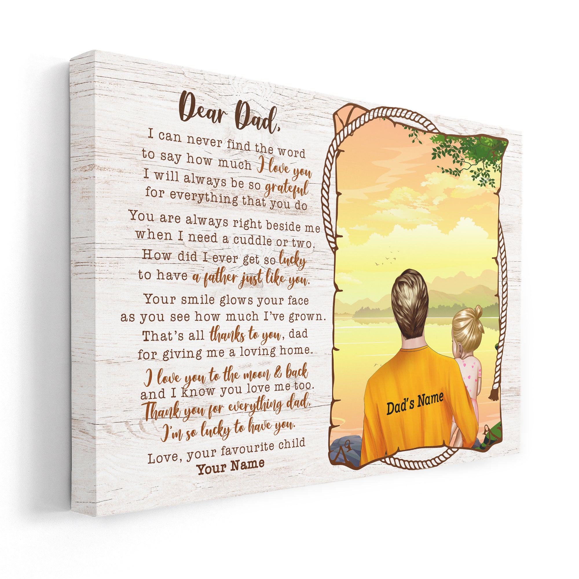 So whether you're looking to show off your own name or create a personalized gift for someone special, LateAndLow Store has got you covered. Start designing your own custom Dear Dad, I Love You To The Moon And Back Canvas & Poster print-on-demand product today, and let us bring your vision to life!