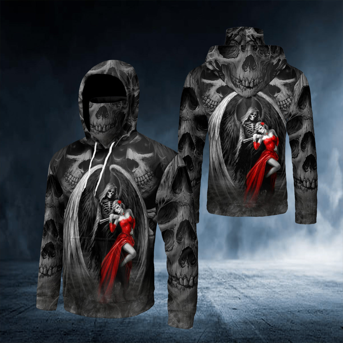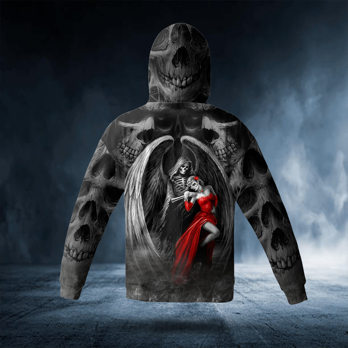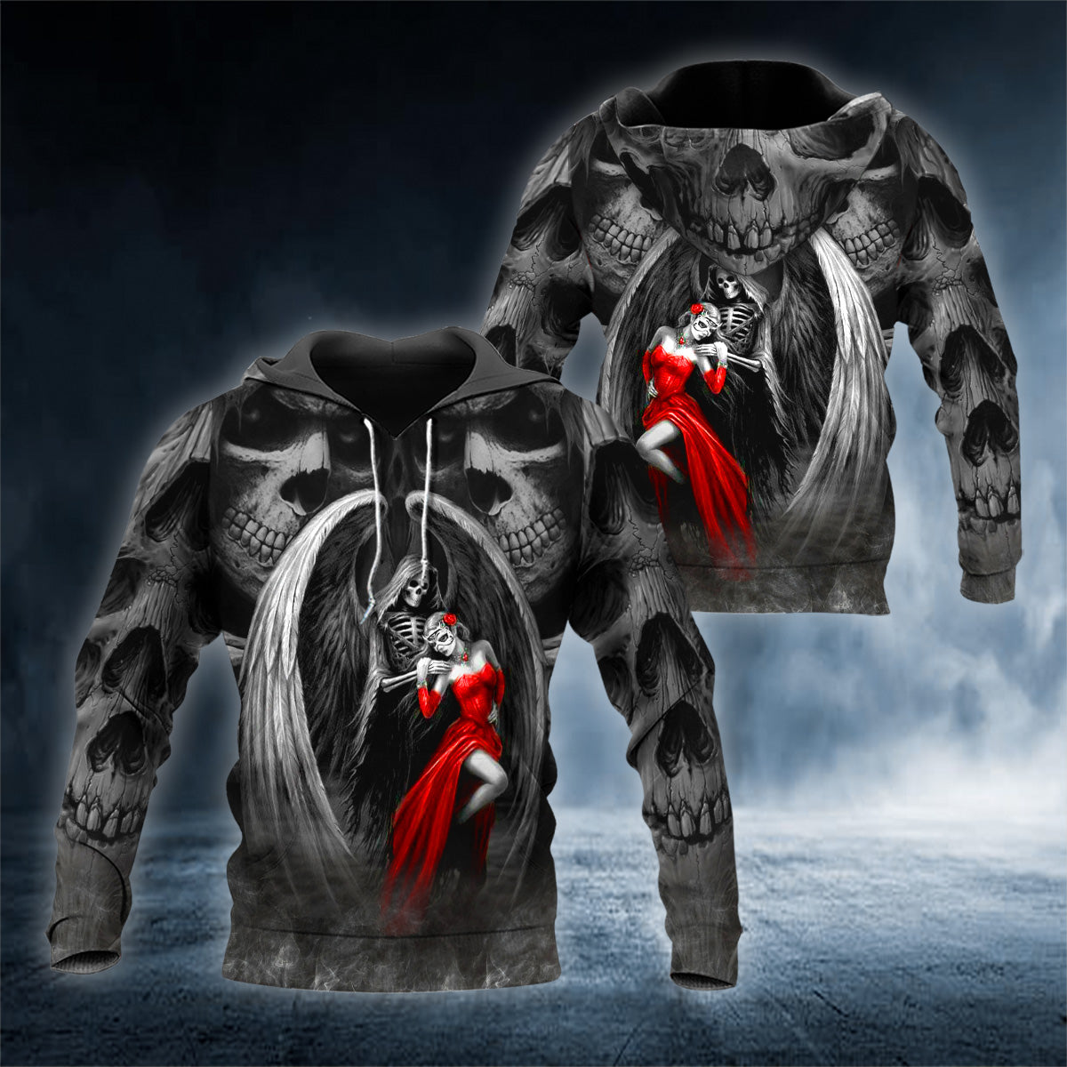 So whether you're looking to show off your own name or create a personalized gift for someone special, LateAndLow Store has got you covered. Start designing your own custom Death The Maiden Reaper And Bride Couple Love Skull 3D Printed Hoodie print-on-demand product today, and let us bring your vision to life!