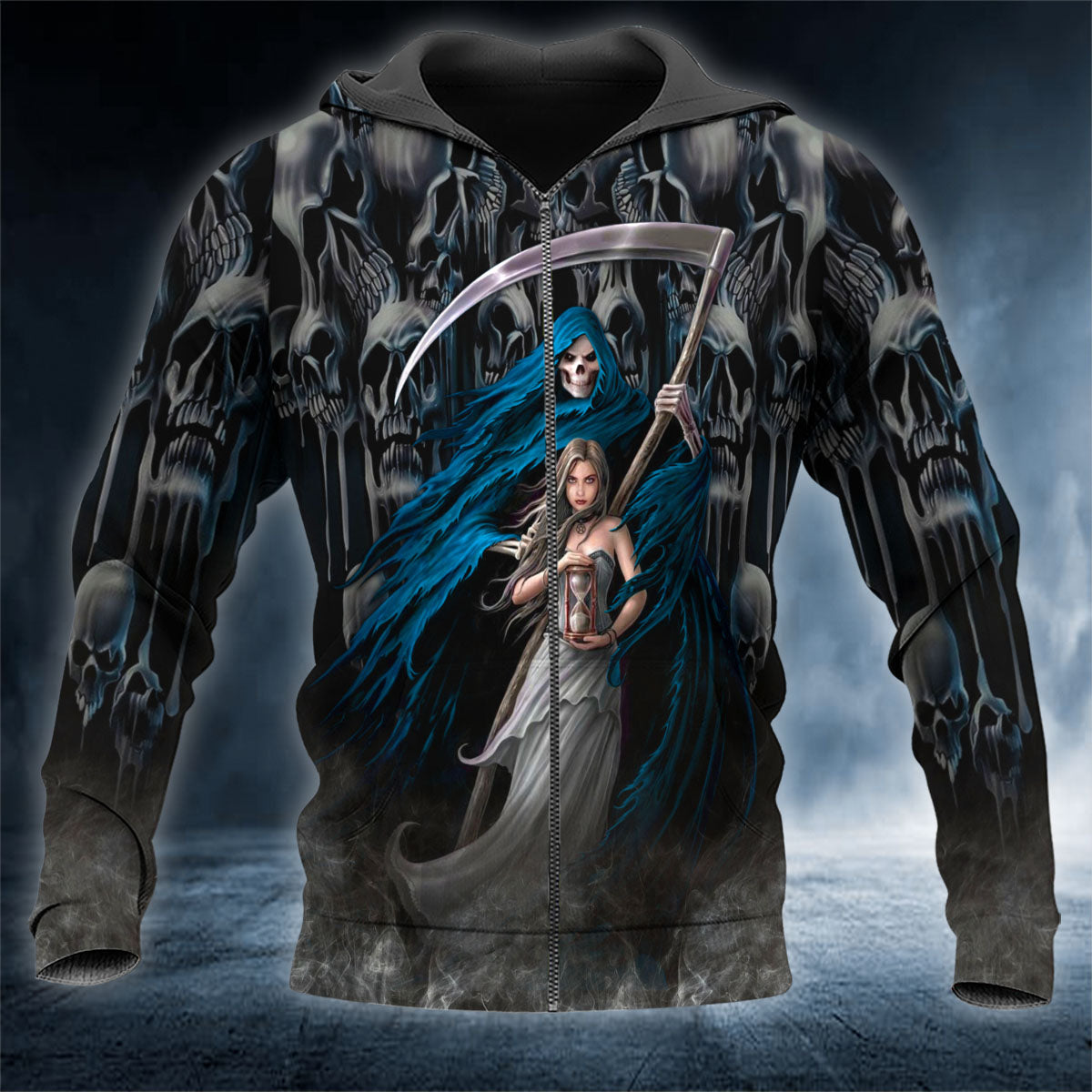 Death Time Keeper Couple Love Skull 3D Printed Hoodie