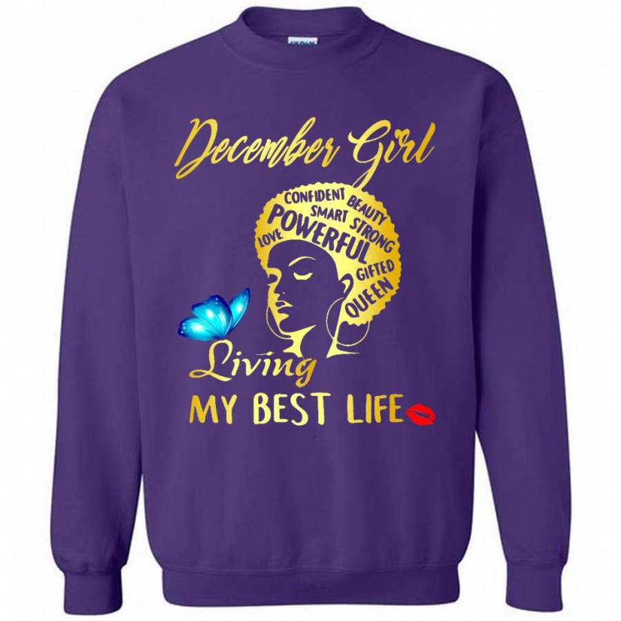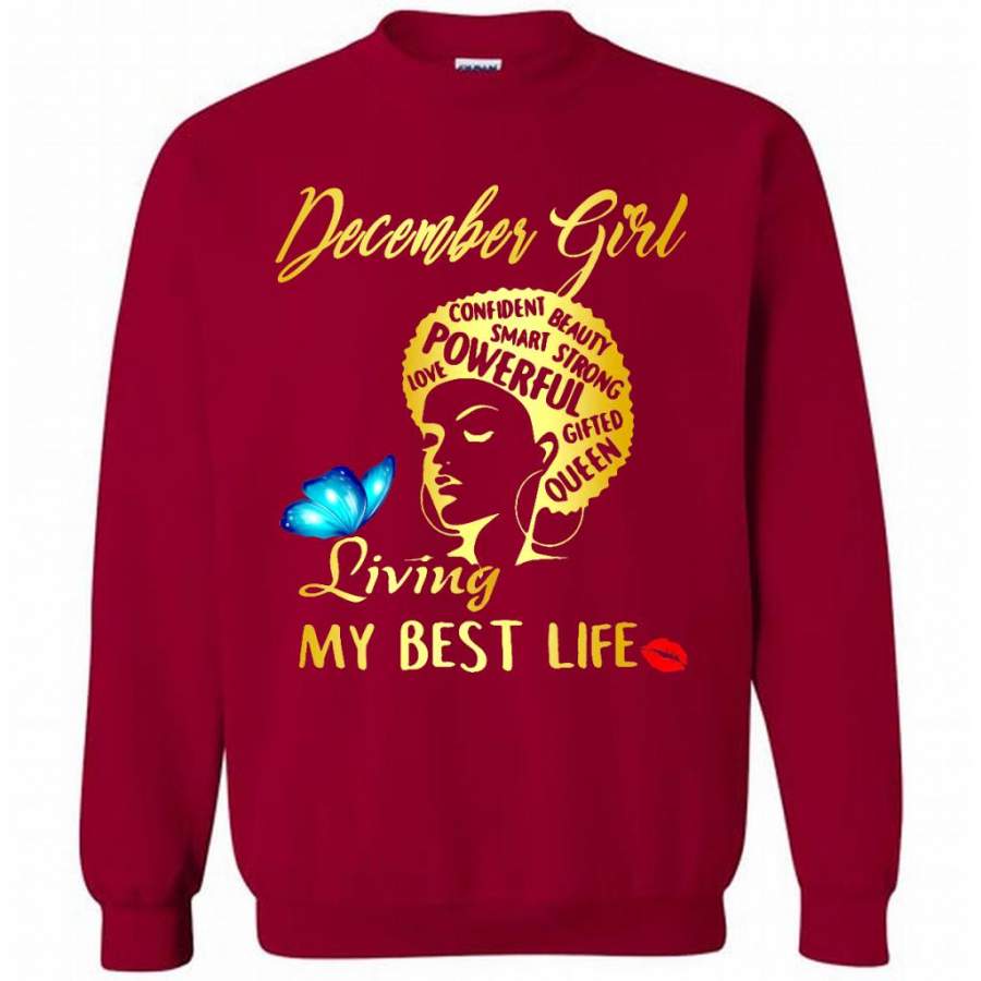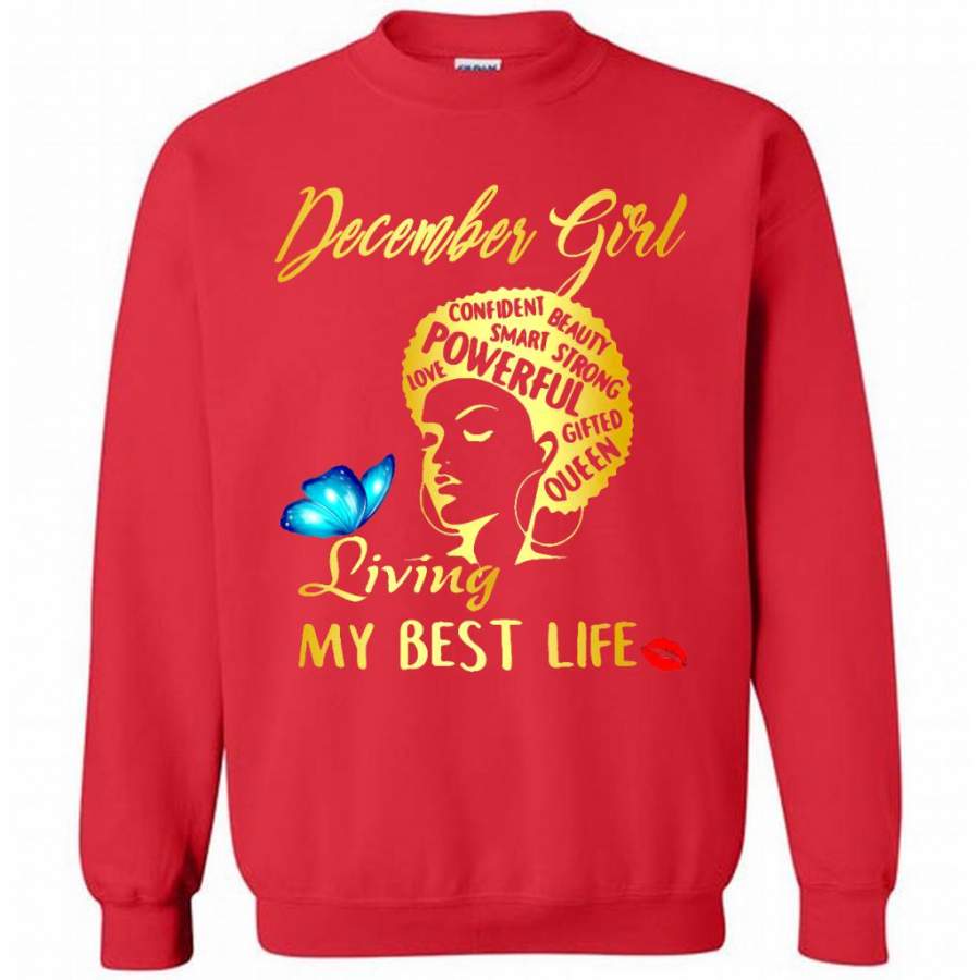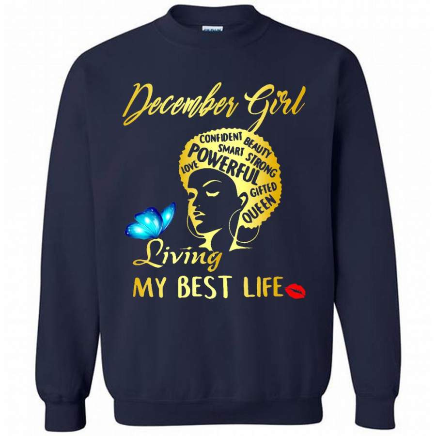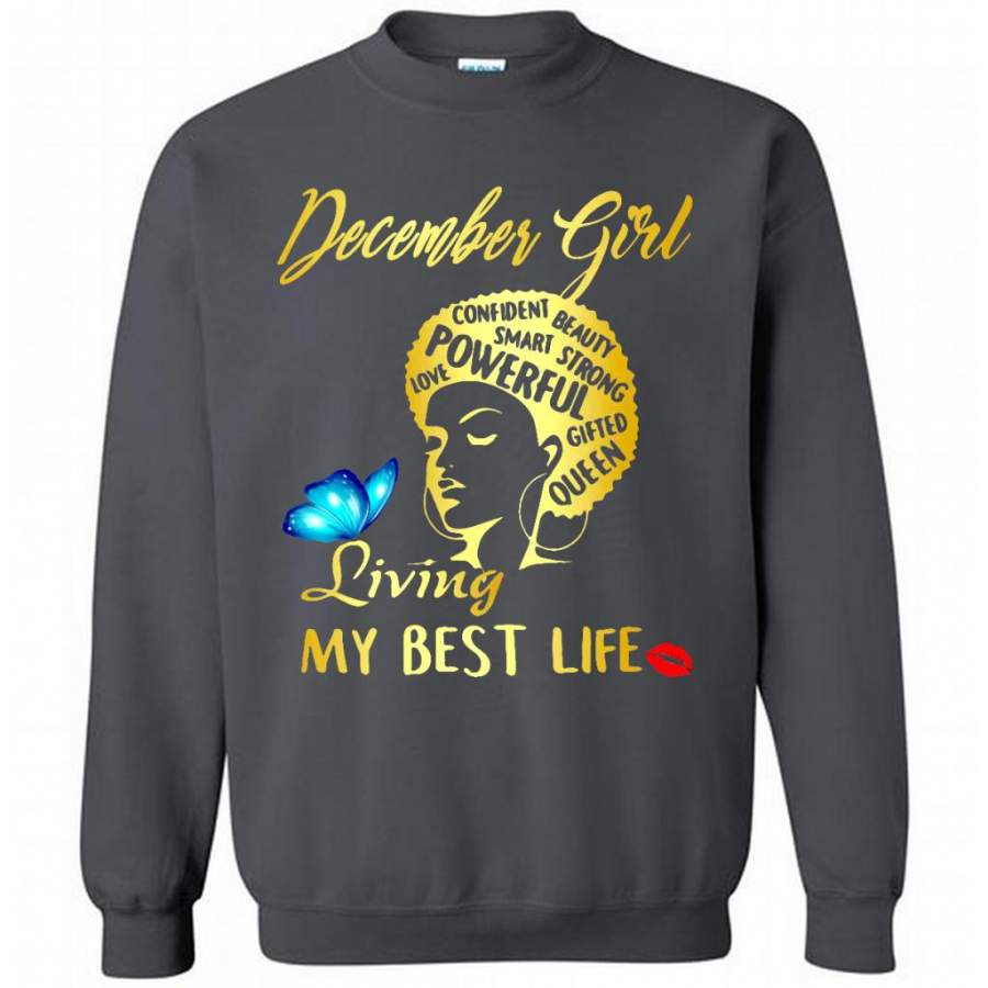 December Girl Living My Best Life Confident Beauty Smart Strong Powerful Love Gifted Queen – Gildan Crewneck Sweatshirt