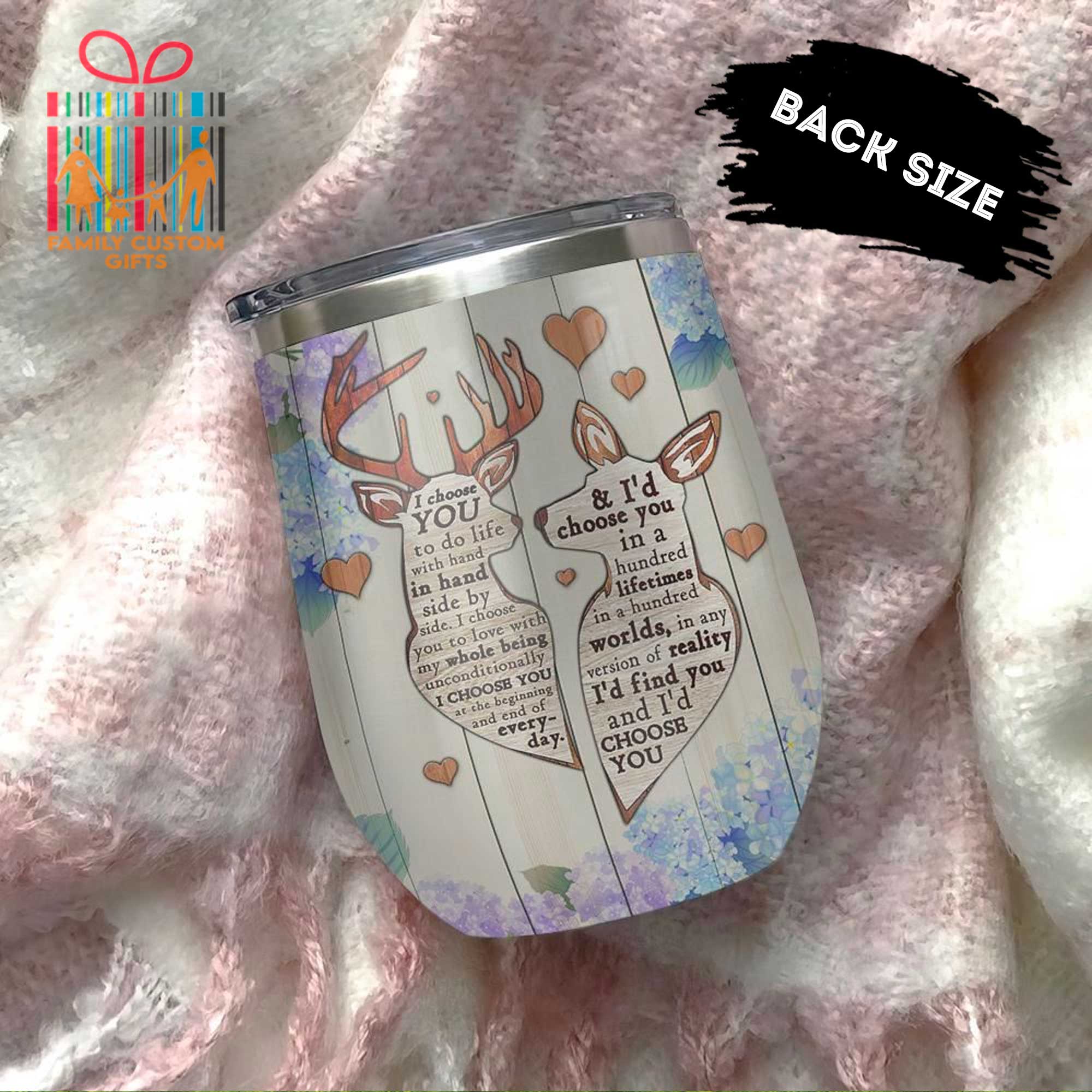 So whether you're looking to show off your own name or create a personalized gift for someone special, LateAndLow Store has got you covered. Start designing your own custom Deer Couple I Choose You Custom Tumbler Cups For Her & Him Personalized Stainless Steel Wine Glasses print-on-demand product today, and let us bring your vision to life!