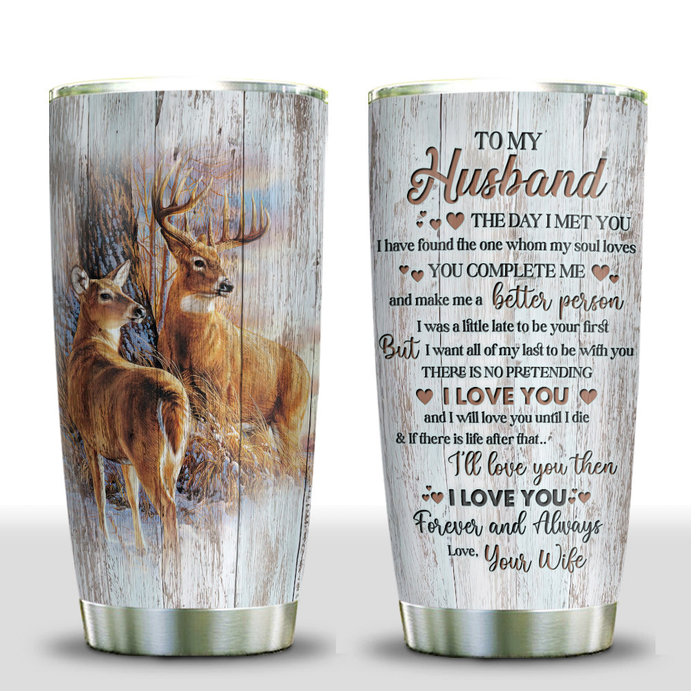 So whether you're looking to show off your own name or create a personalized gift for someone special, LateAndLow Store has got you covered. Start designing your own custom Deer Couple To My Husband Rmk Ablz2809002Z Stainless Steel Tumbler print-on-demand product today, and let us bring your vision to life!